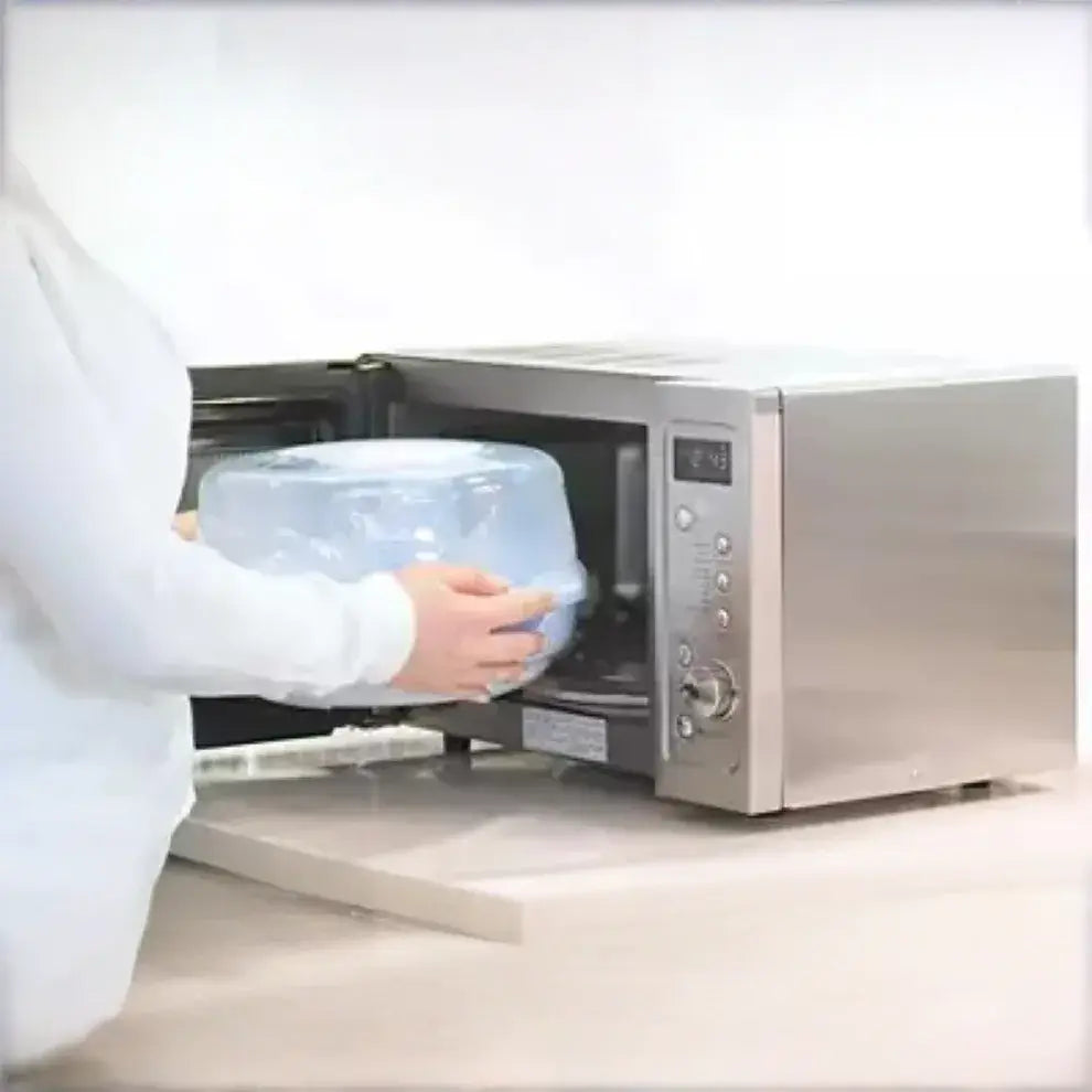 סטריליזטור למיקרוגל יכול לשמש לחיטוי בקבוקים לתינוק ומוצרים אחרים ב-2 דקות בלבד, ומחסל 99.9% מהחיידקים והבקטריות. משכו המדויק של המחזור תלוי בהספק תנור המיקרוגל שלכם: 2 דקות בהספק של 1200-1850 ואט, 4 דקות בהספק של 850-1100 ואט, ו-6 דקות בהספק של 500-800 ואט.