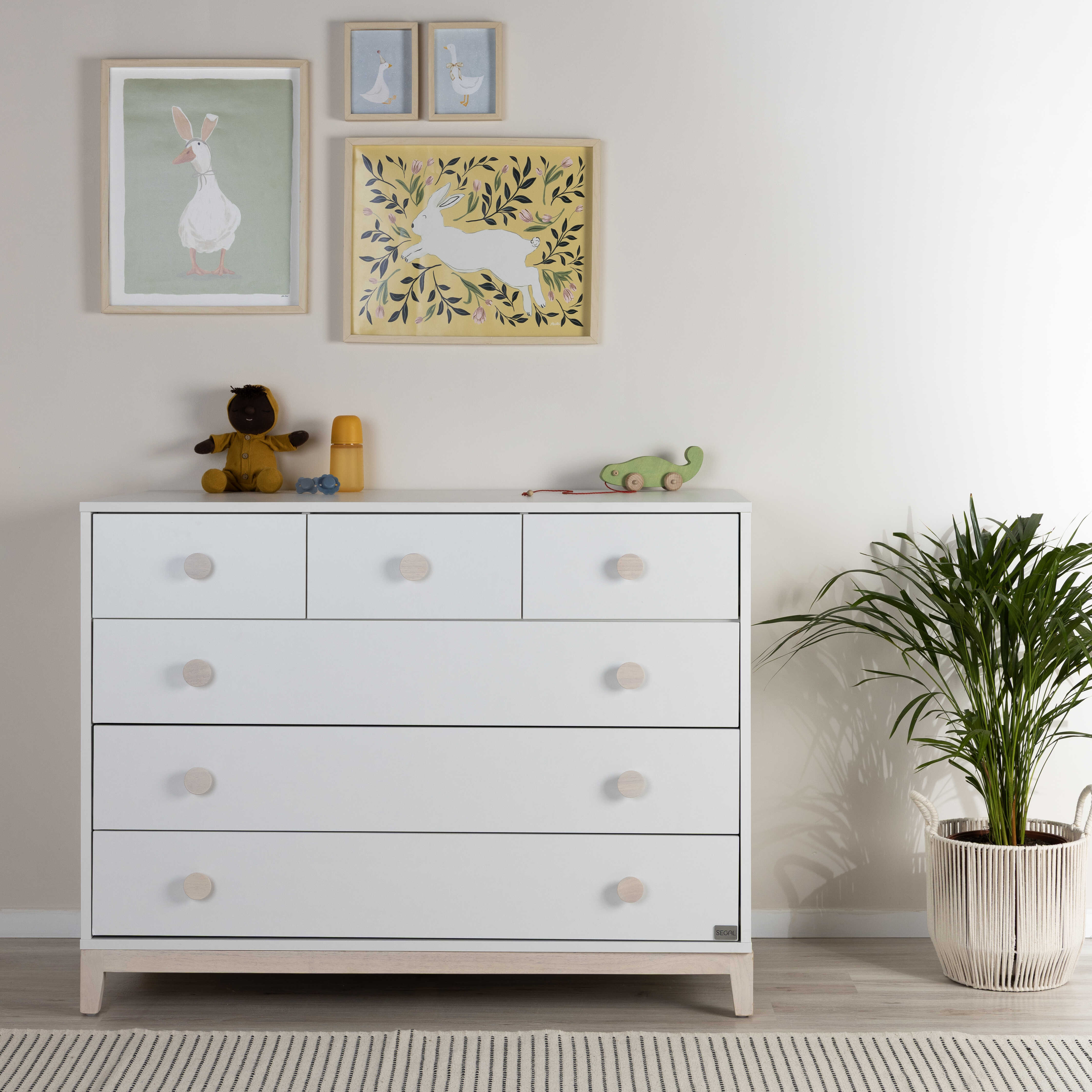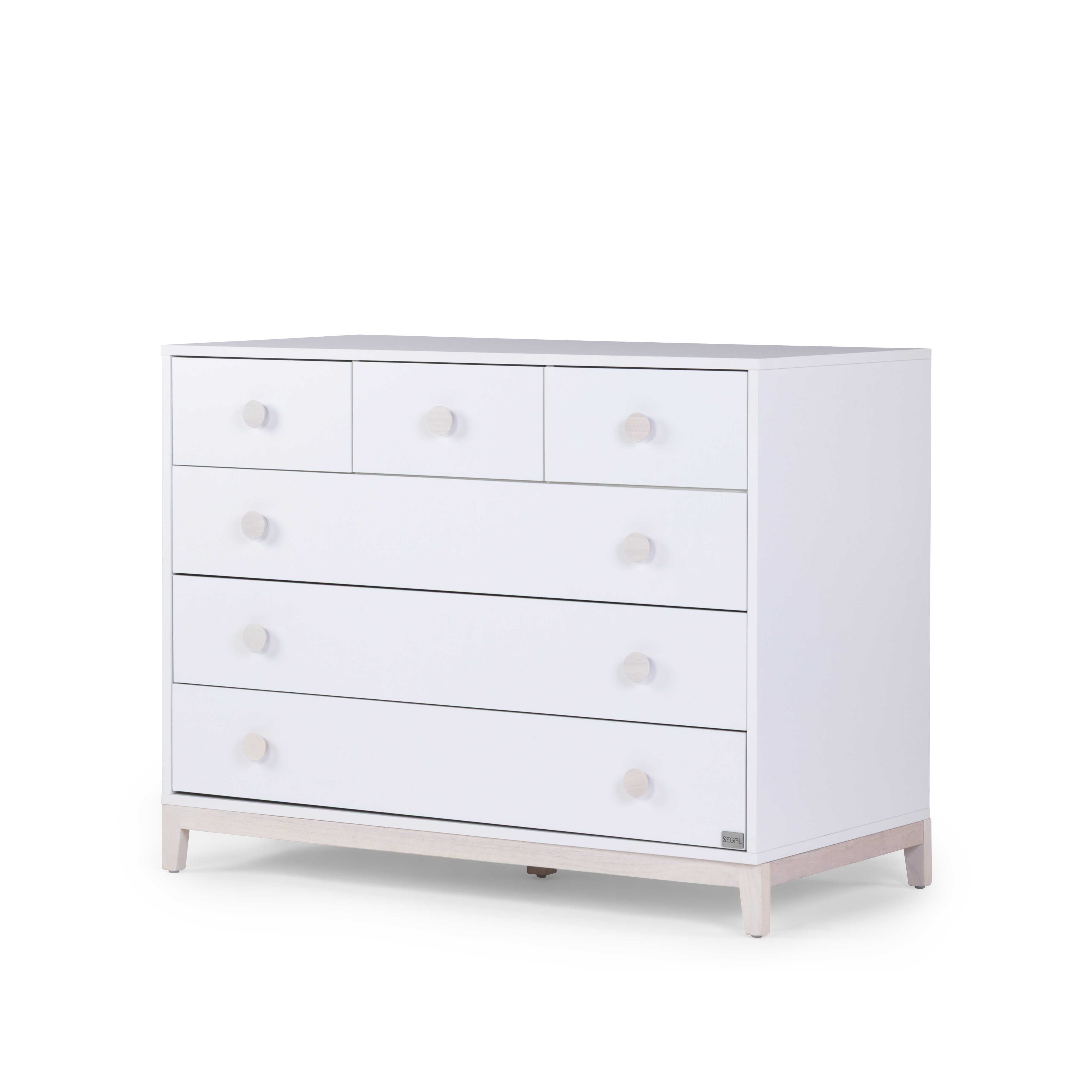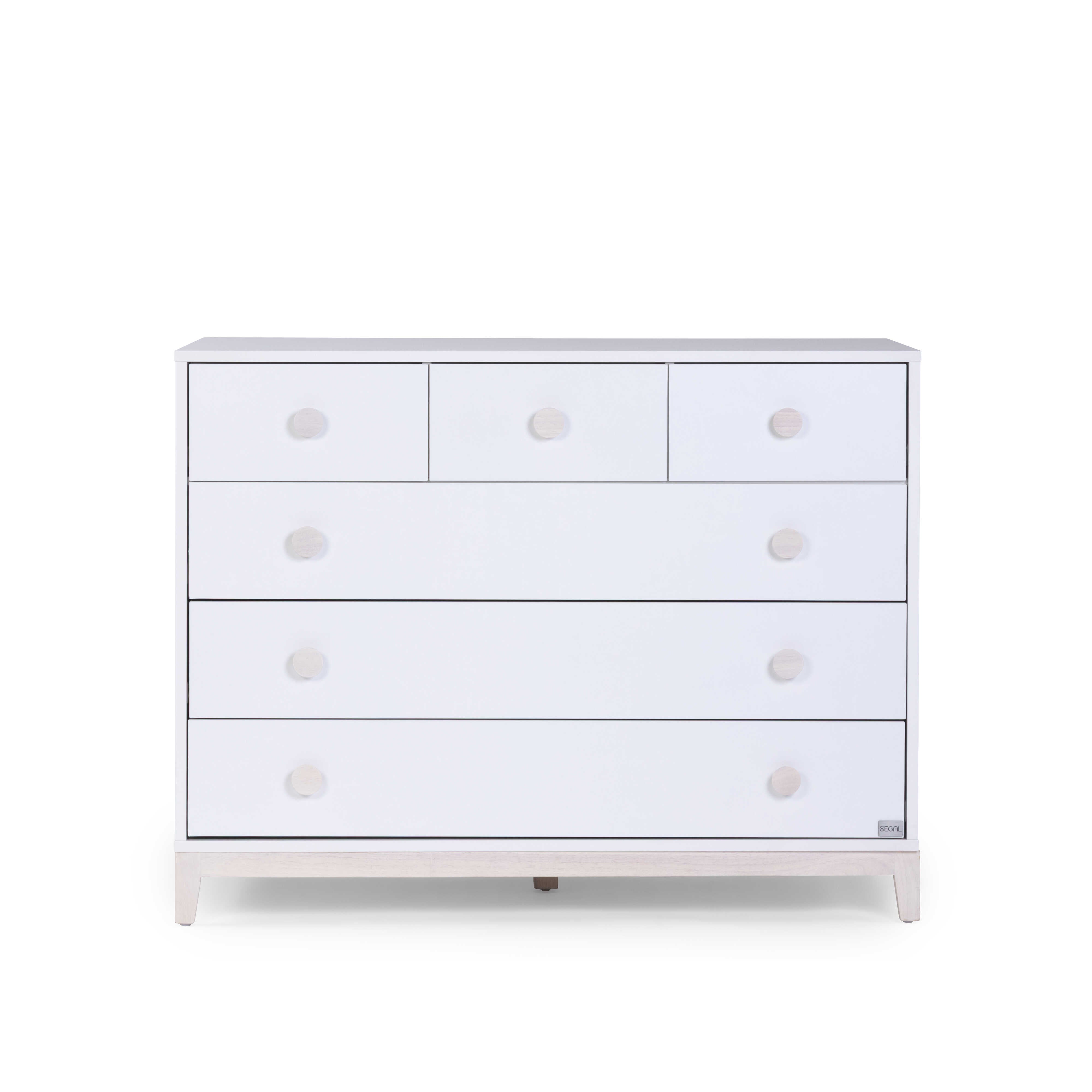 שידת תינוק אלגנטית עם 6 מגירות מרווחות לנוחות אחסון מקסימלית, ברוחב 120 ס"מ.