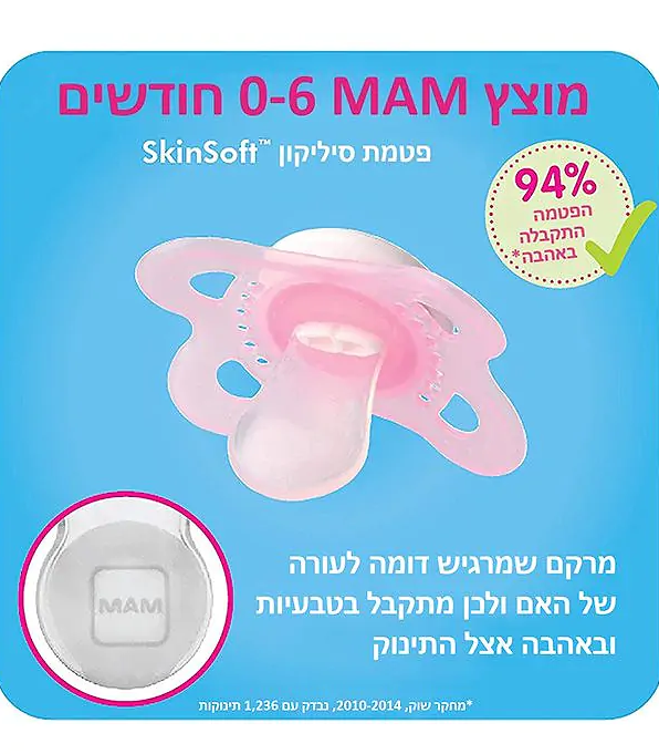 פטמה אורתודנטית סימטרית, לגיל 0-6 חודשים. עשוי מפוליפרופילן ובטוח לשימוש