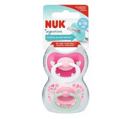 זוג מוצצים סיגנטור 6-18 ורוד NUK