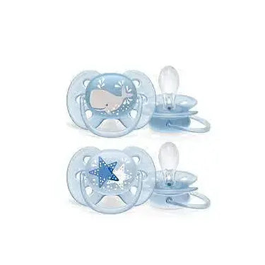 זוג מוצצי סיליקון לבנים 6-18 חודשים Avent Ultra Soft - עיצוב ים