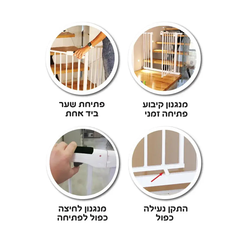 שער בטיחות ללא קדיחה! עם סגירה אוטומטית המסייעת להורים ביצירת סביבה בטוחה ומוגנת לפעוטות.