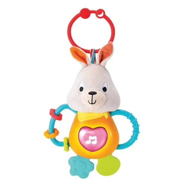 בובת ארנב רכה ונעימה וטקסטורות שונות לעידוד פיתוח מוטוריקה עדינה. בובת הארנב מגיעה עם כפתור לב מהבהב ומשמיע מנגינות משעשעות וטבעת המאפשרת לחבר בקלות לעגלה, למיטה ולמושב האוטו.