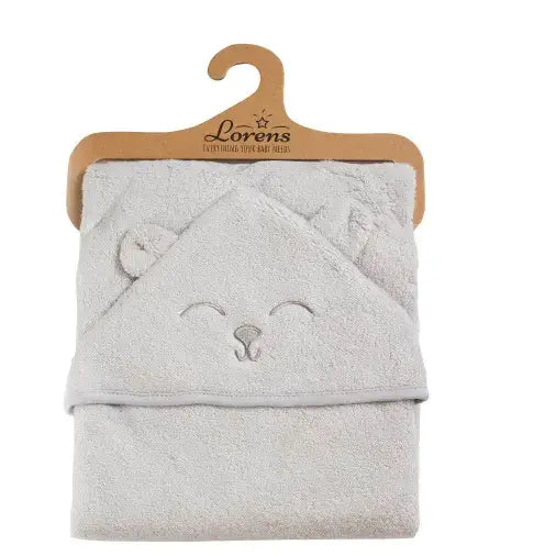 למגבת יש כובע קפוצ’ון לעיטוף ראשו של התינוק.