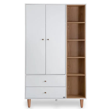 הארון מעוצב עם 3 שטחי אחסון: ארון סגור, ספריה פתוחה עם 5 מדפים,ואחסון נוסף סגור בדופן הארון.