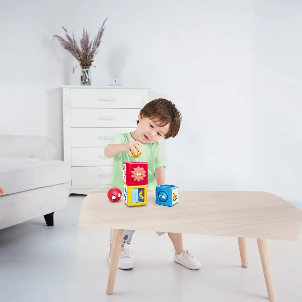 תהליך המיון עוזר לאמן חשיבה מרחבית, והתמונות על הקוביות מלמדות את הילד את הקשר בין מספרים לכמויות.