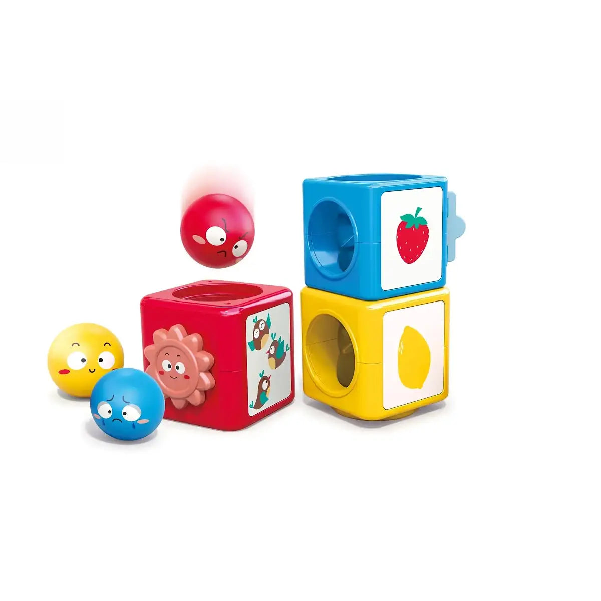 הכדורים הצבעוניים משתנים בקוטר ויוצאים מהקובייה התואמת, ומציגים לילדכם את רעיון המיון.