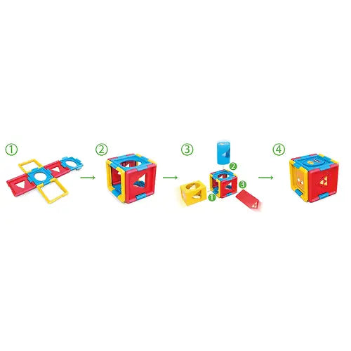 יש למקם את 3 הצורות בצורה הגיונית ובסדר הנכון כדי ליצור קובייה.