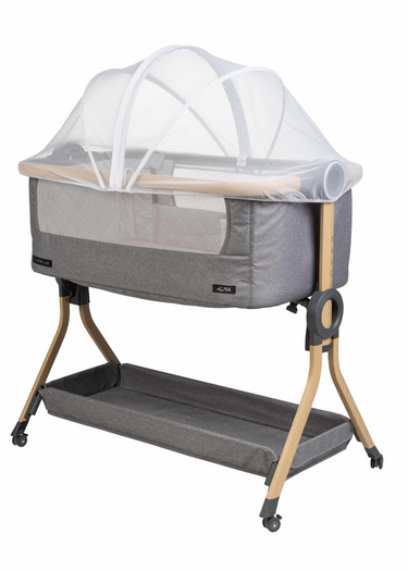 לעריסה גלגלים עם נעילה, מזרן עבה במיוחד, כילה מפוארת ומשטח אחסנה גדול במיוחד.