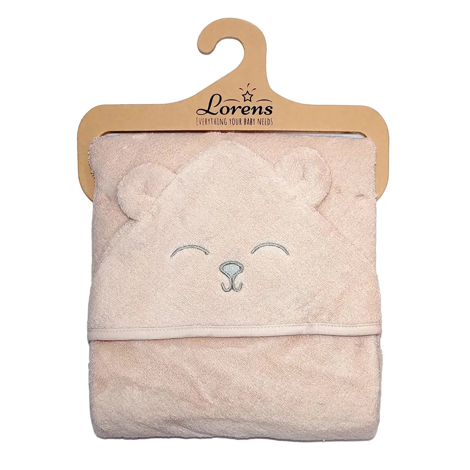 למגבת יש כובע קפוצ’ון לעיטוף ראשו של התינוק.