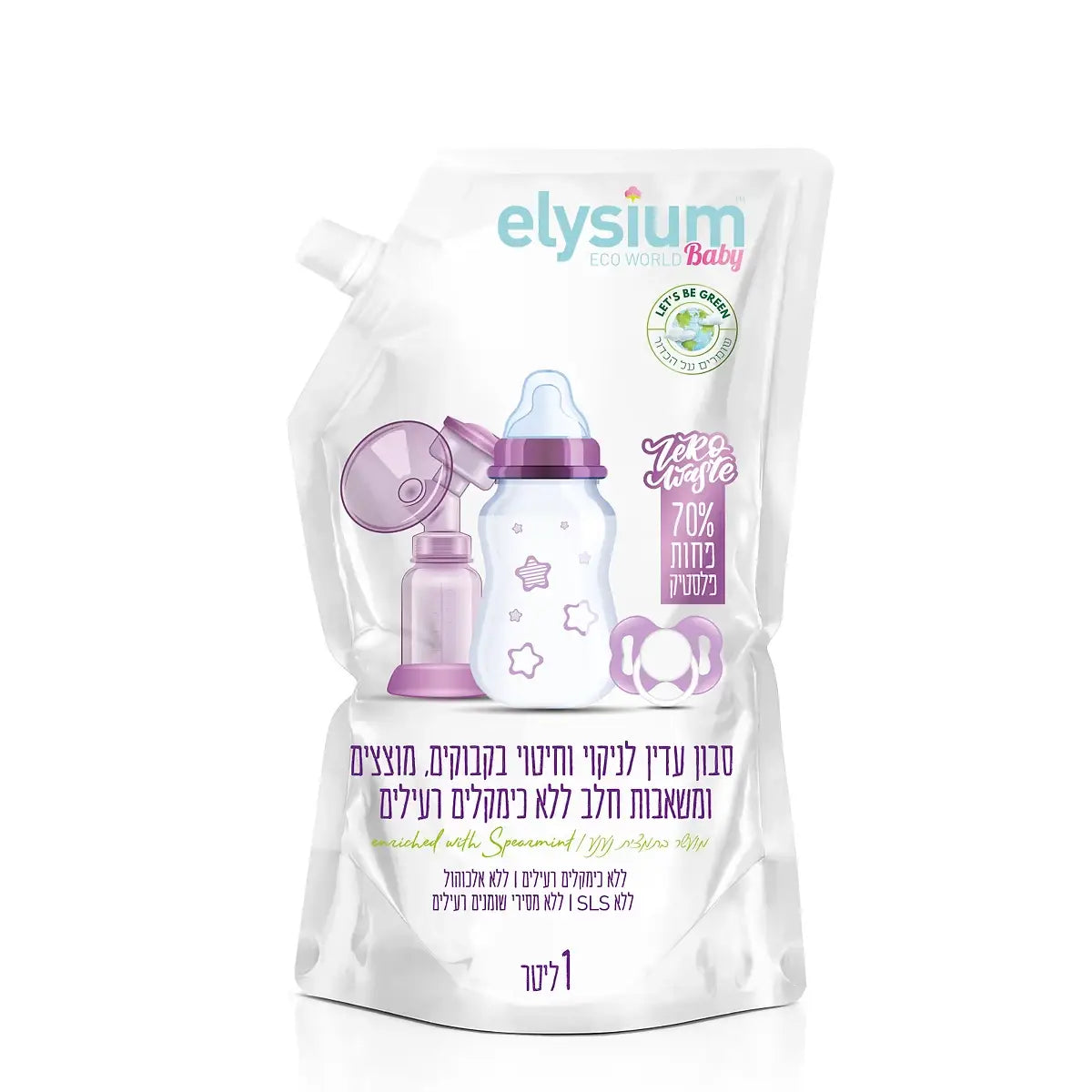 סבון טבעי לניקוי וחיטוי בקבוקים, מוצצים ומשאבות חלב בשקית מילוי לבקבוק בנפח 1 ליטר.