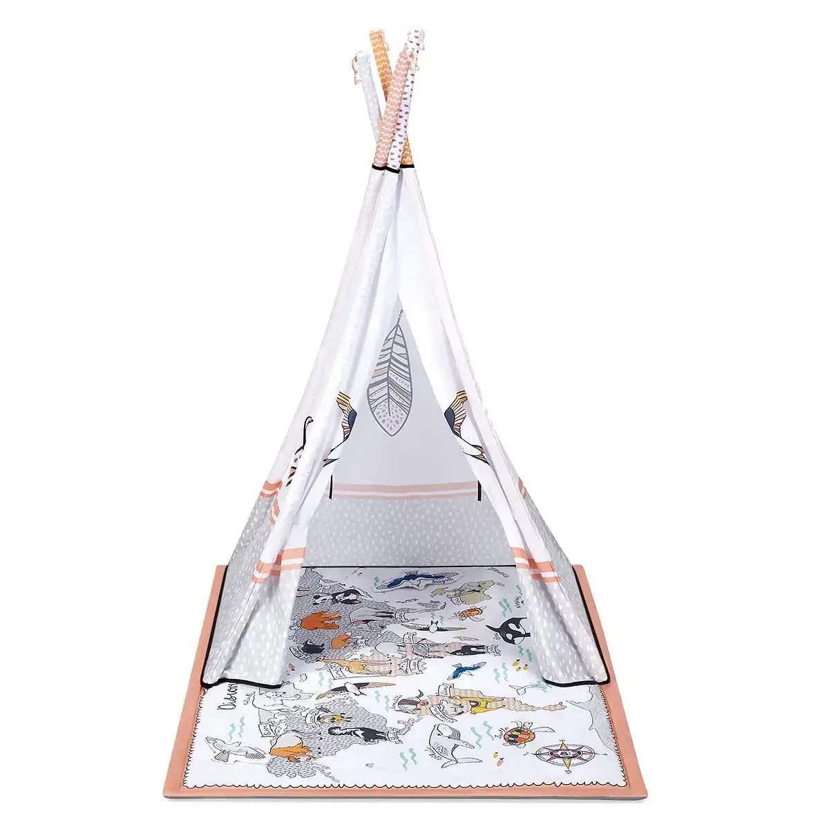 משטח פעילות ייחודי 3 ב 1 מפנק וייחודי מאת קינדרקראפט משטח רחב ומאויר באיורים עדינים של חיות בכדור הארץ אוניברסיטה מעוצבת הכוללת משטח,2 קשתות ו 4 צעצועי חיות אוהל טיפי מעוצב ומרהיב הכולל משטח,קשתות ודפנות עם חלונות לאוהל וניתן להשתמש במשטח כשמיכת פעילות רכה ומעוצבת לשימוש בחוץ מתאים מגיל לידה ועד לגיל 5 בערך