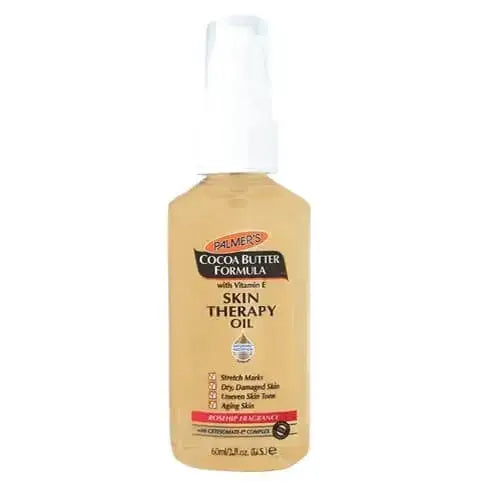 שמן הטיפול לעור רוזהיפ של פאלמרס, על בסיס חמאת קקאו, הוא מוצר רב-תכליתי שמתאים לשימוש בכל חלקי הגוף והפנים. המוצר קל משקל, נטול משמרים ופתלטים, ומשלב מרכיבים לשיפור מראה העור, סימני מתיחה, עור יבש ופגום, גוון לא אחיד, קמטים וזקנה. השמן מעניק לעור רכות ולחות, איננו שמנוני או מכתים, ומומלץ לשימוש יומיומי. כמה טיפות יספקו לעור מראה זוהר ולחות ממושכת.