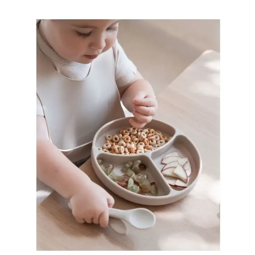צלחת סיליקון מחולקת לשלושה תאים בעלת בסיס הנצמד לשולחן או לכיסא התינוק, מתאימה לשלב האכלה עצמית ומעודדת התנסות במאכלים שונים. עשויה 100% סיליקון איכותי.