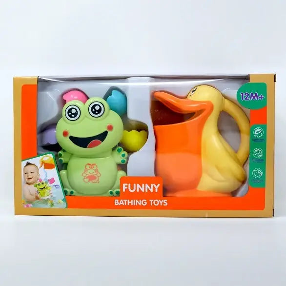 צפרדע צבעונית למשחק מים מהנה באמבטיה ומשפך גדול בצורת שקנאי