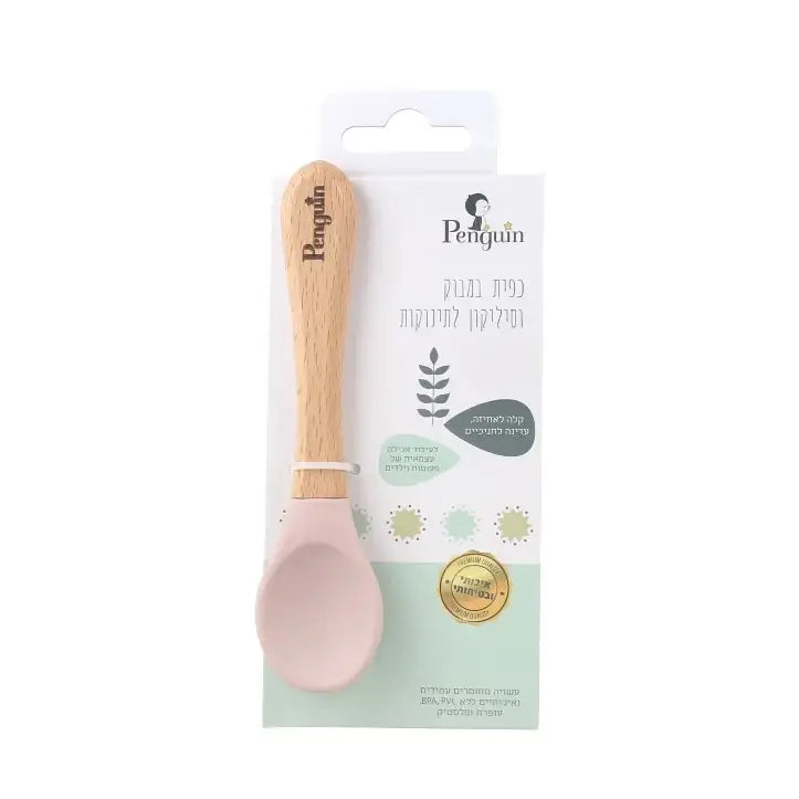 כפית במבוק וסיליקון מבית Penguin עשויה מ-100% סיליקון ועץ במבוק איכותי. ללא BPA וללא פתאלאטים. לעידוד אכילה עצמאית של פעוטות וילדים.