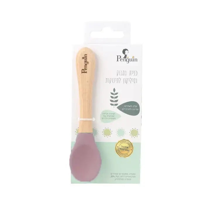 כפית במבוק וסיליקון מבית Penguin עשויה מ-100% סיליקון ועץ במבוק איכותי. ללא BPA וללא פתאלאטים. לעידוד אכילה עצמאית של פעוטות וילדים.