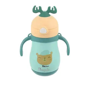 כוס תרמית לילדים מבית Penguin, כוס תרמית לילדים הנפתחת בלחיצת כפתור, כוללת קש נשלף וידיות אחיזה מרווחות. הכוס שומרת על קור 12 שעות ועל חום 8 שעות.