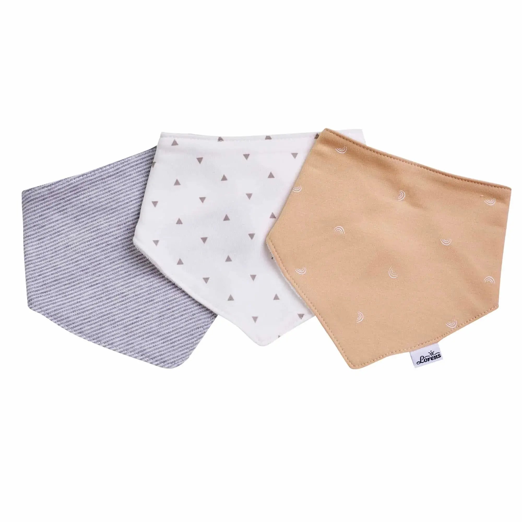 מארז 3 סינרי בנדנה רכים ואיכותיים, צד אחד כותנה רכה, צד שני מגבת איכותית. פריט חשוב ופרקטי לספיגת הרוק בזמן הוצאת השיניים הראשונות ,מומלץ במיוחד לתינוקות מריירים. כל סינר נקשר סביב צוואר הילד/ה על ידי 2 טיקטקים (סגירה נוחה וקלה). גיל מומלץ לשימוש: תינוקות החל מגיל 3 חודשים