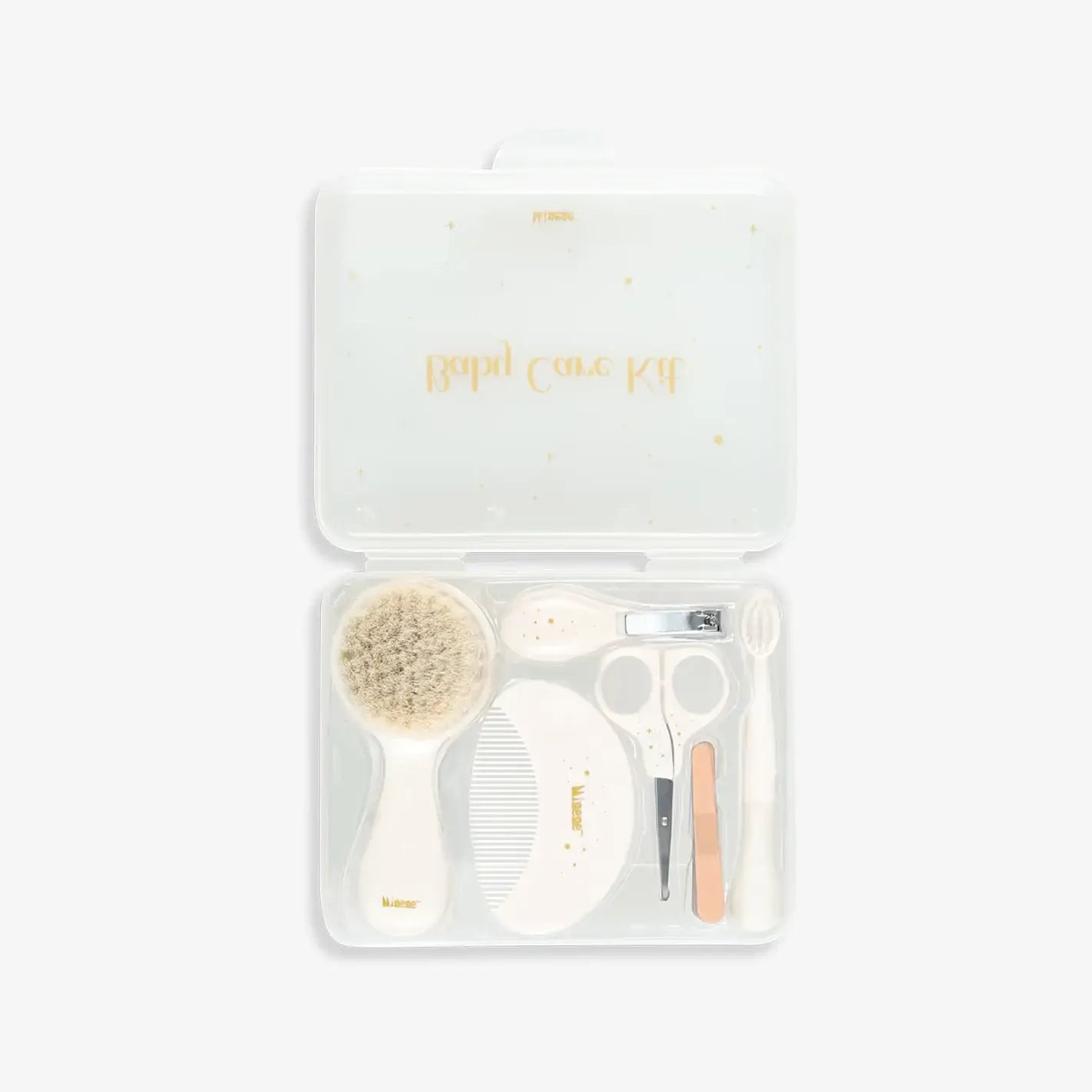 סט טיפוח עם כל המוצרים הנדרשים לטיפול יומי בתינוקך! הסט מכיל: מברשת שיער עם סיבים רכים, מסרק עם קצוות, מעוגלים, קוצץ ציפורניים נוח וקל לשימוש, מספריים נוחות לאחיזה ושליטה מדוייקת עם קצה מעוגל לשימוש קל ובטוח,