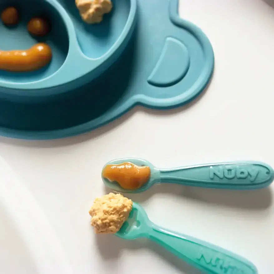 הכפיות הראשונות שלי מעודדות האכלה עצמית קלה, בעלות ידיות סיליקון לאחיזה נוחה של התינוק, מושלמות לירקות מרוסקים ולמזונות חצי מוצקים, אוספות בקלות דייסה ואוכל תינוקות סמיך יותר.