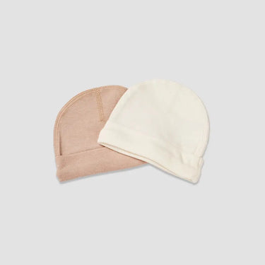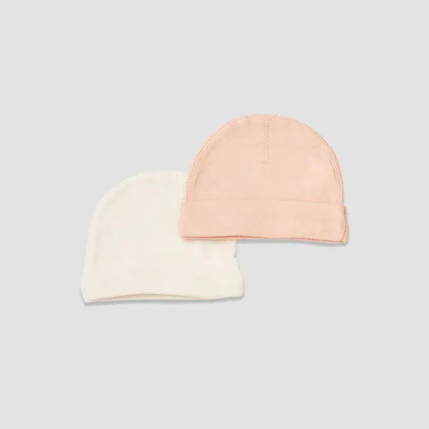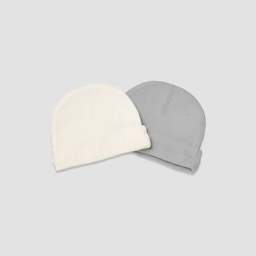 זוג כובעים רכים ונעימים לבייבי. קולקציית הביגוד הראשונה של לורנס מעוצבת ברכות ובנוחות לשימוש יומיומי, עשויה 100% כותנה נעימה.