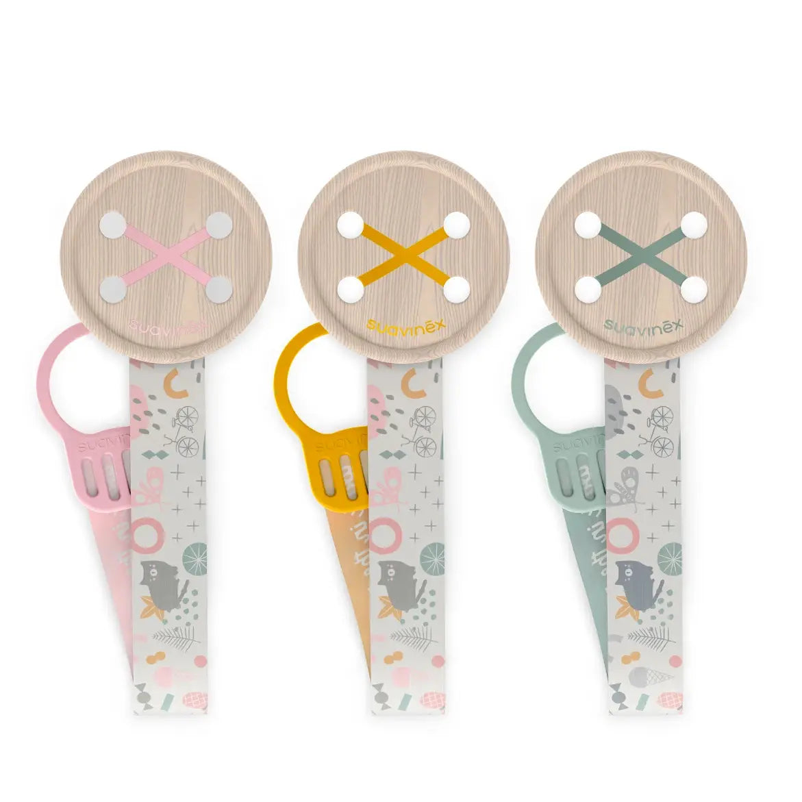 מאויר ומגיע בשלל צבעים רכים. השימוש בקליפס הבטיחותי הוא קל ונוח, וניתן להעביר אותו בקלות מבגד לבגד, כך שתמיד יהיה אפשר למצוא את המוצץ ולהשתמש בו כאשר התינוק צריך אותו.