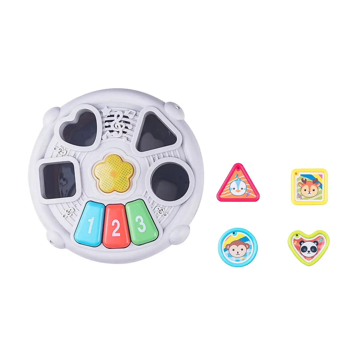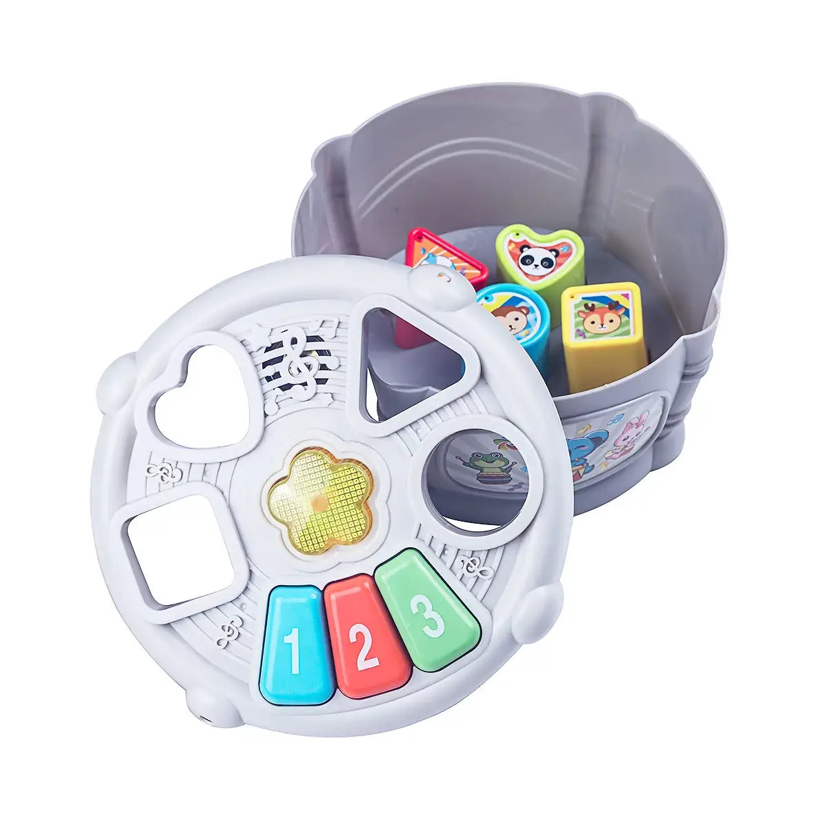 תוף מיון צורות דובר עברית! תוף אחד וכל כך הרבה הפתעות: השחלת צורות, מקצבי תופים, צורות, צבעים, מילים ושירים. תוף ההשלחה שלנו מבטיח חוויית משחק לימודית ומהנה לפעוטות, התורמת למגוון מיומנויות מוטוריות וקוגנטיביות.
