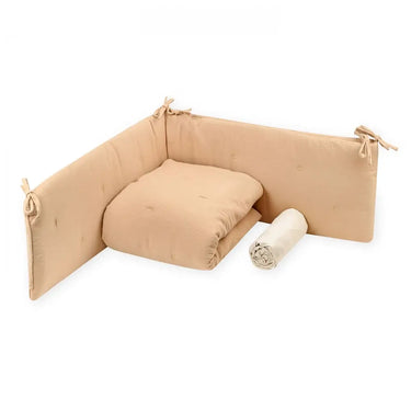 סט מצעים למיטת תינוק עשוי מבד רך ונעים 100% כותנה,הסט מורכב משלושה חלקים: שמיכה בגודל 95/115 ס”מ,מגן ראש עם חלוקה :70-70-70 ס”מ וסדין בגודל 18*130*70 ס"מ