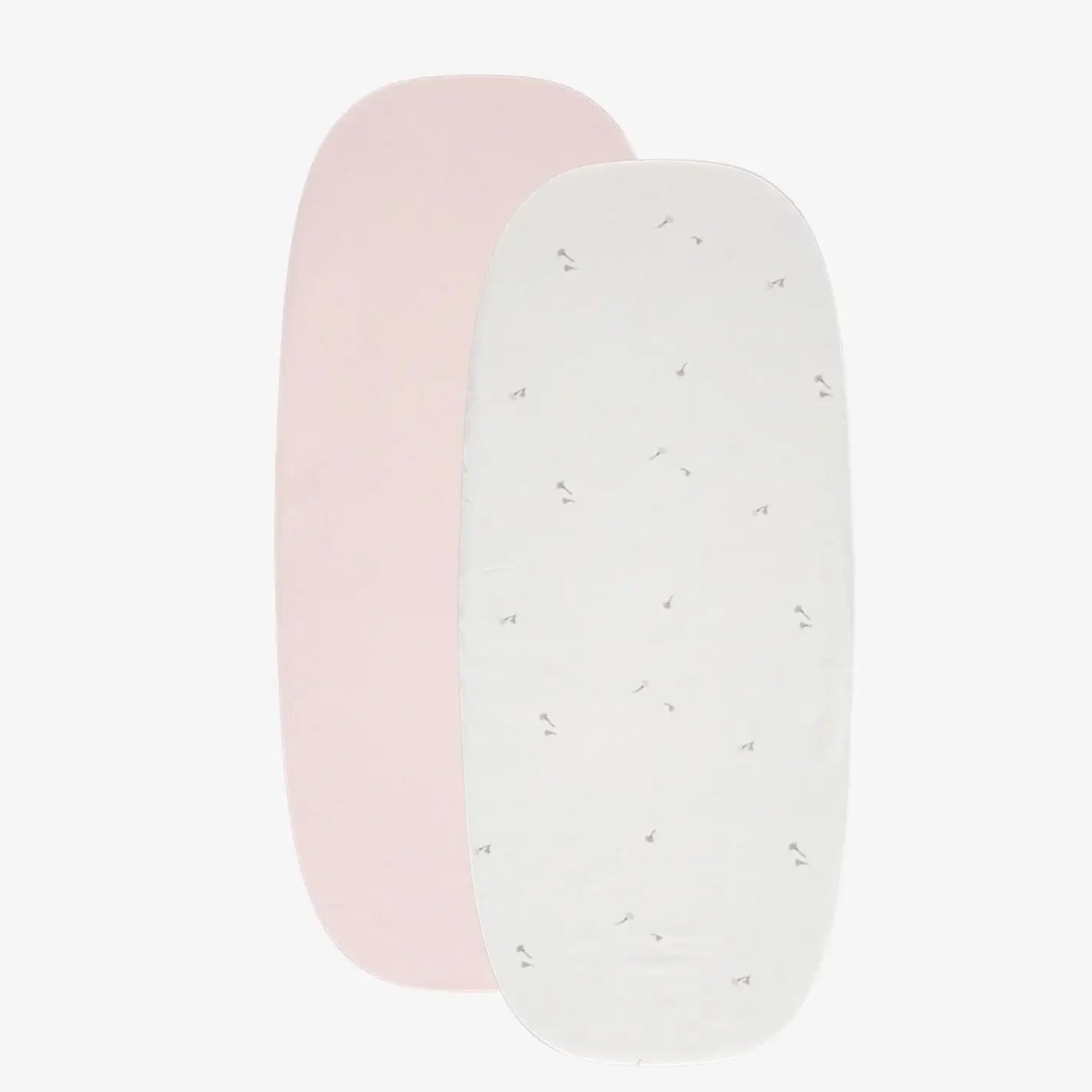 זוג סדינים לעגלה מודפס+חלק. עשויים בד ג'רזי 100% כותנה. מידה: 44x78x8 ס"מ. הוראות כביסה בהתאם לתווית.