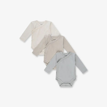 שלישיית בגדי גוף מעטפת מידה 0-3. הרכב בד: 100% כותנה. הוראות כביסה בהתאם לתווית.