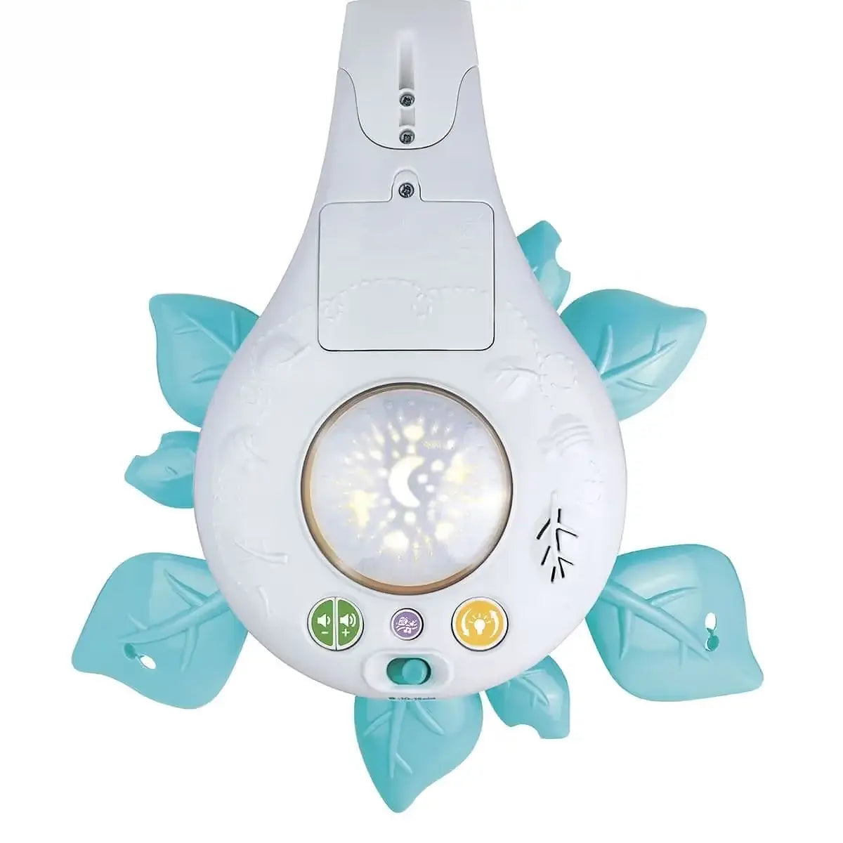 המובייל מרגיע את תינוקך ועוזר לו להירדם באמצעות השמעת קולות ומנגינות והקרנת אורות על גבי התקרה.