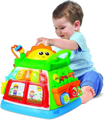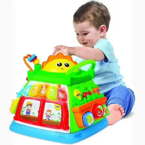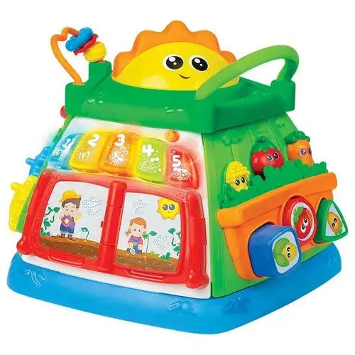 התיבה מציעה מגוון רב של פעילויות לתרגול מוטוריקה עדינה, התאמת צורות, חרוזים מתגלגלים, קלידים מהבהבים, ספר אלקטרוני, שבשבות מסתובבות וקולות אורות וצלילים