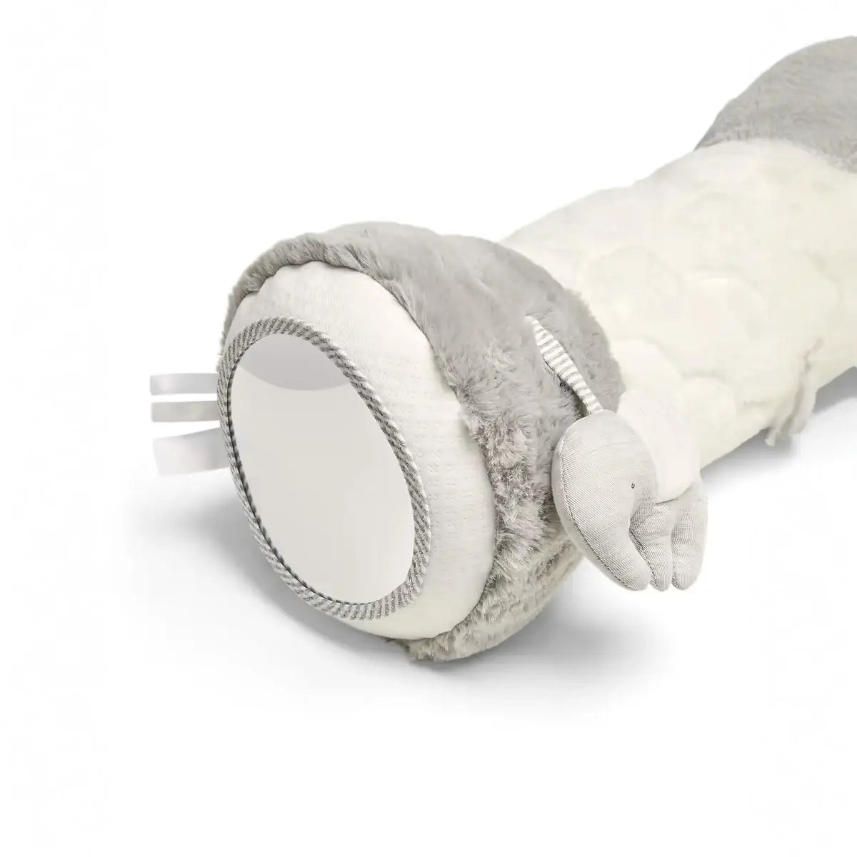 מעוצב בצורה מושלמת ורכה במיוחד להשענת התינוק על זרועותיו, כדי לעודד אותו להזיז את ראשו. מלא ברעשים ומרקמים מרגשים; מקמטים, רעשנים וחריקות.