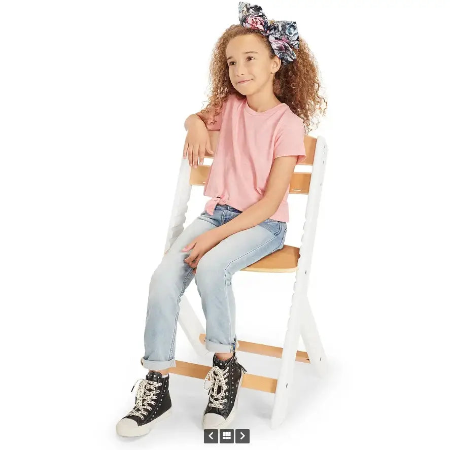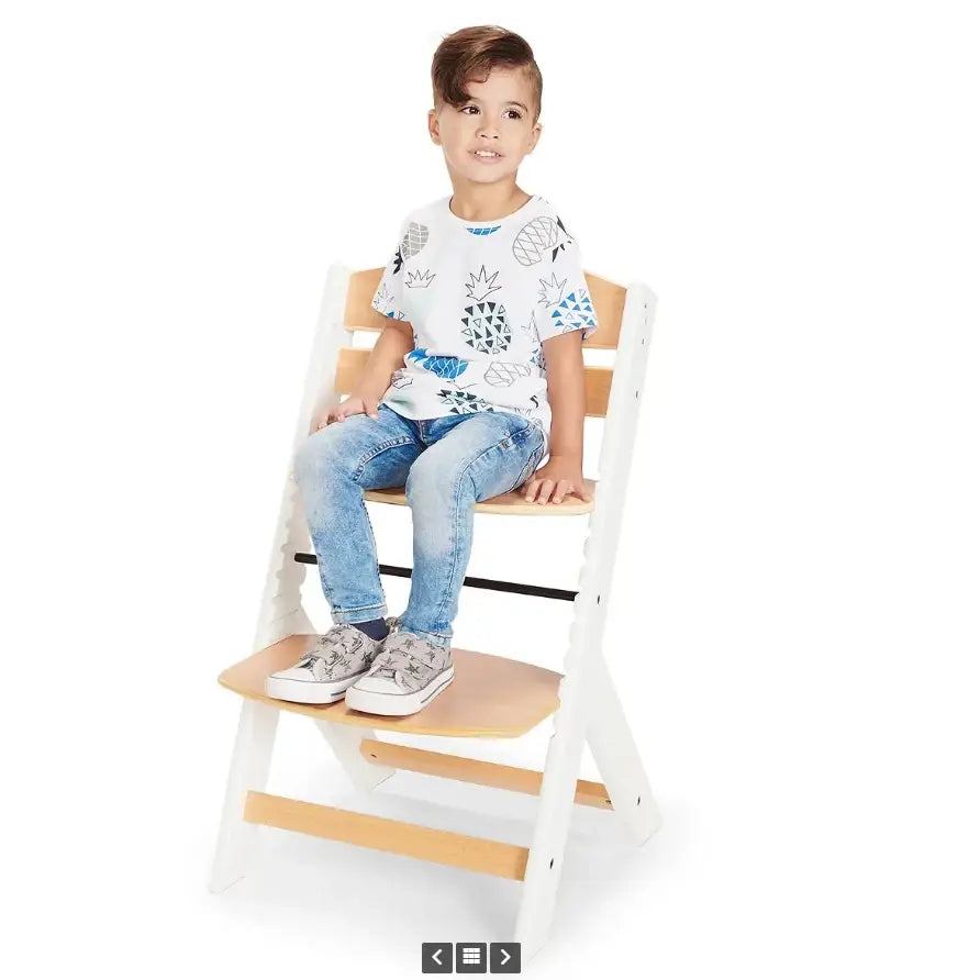 כסא אוכל מעוצב ואיכותי מעץ מלא, מתכוונן לעשרות אפשרויות של גובה רגליים גב ומושב