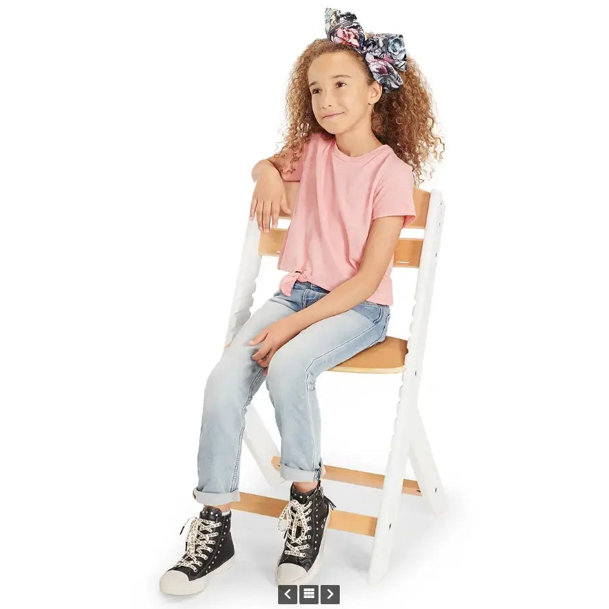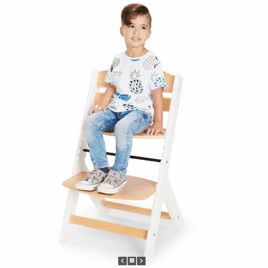 כסא אוכל מעוצב ואיכותי מעץ מלא, מתכוונן לעשרות אפשרויות של גובה רגליים גב ומושב
