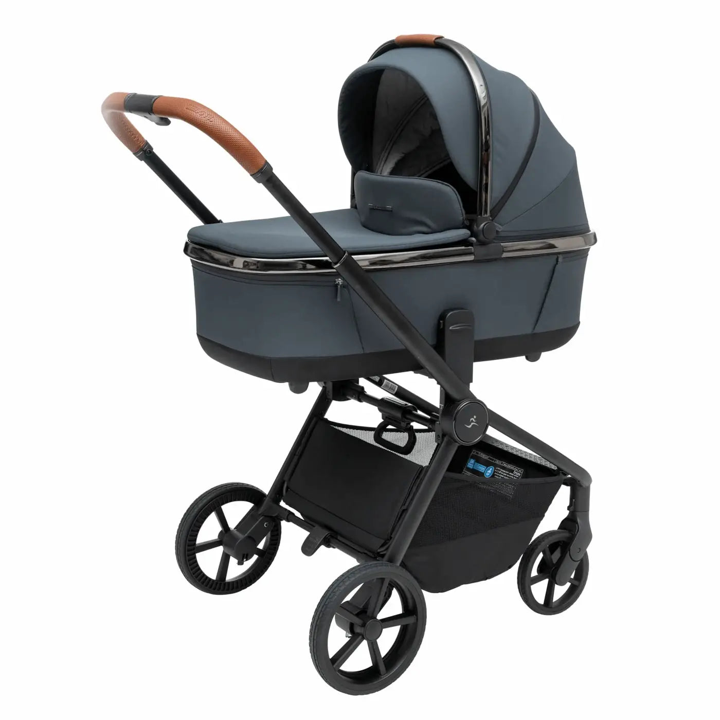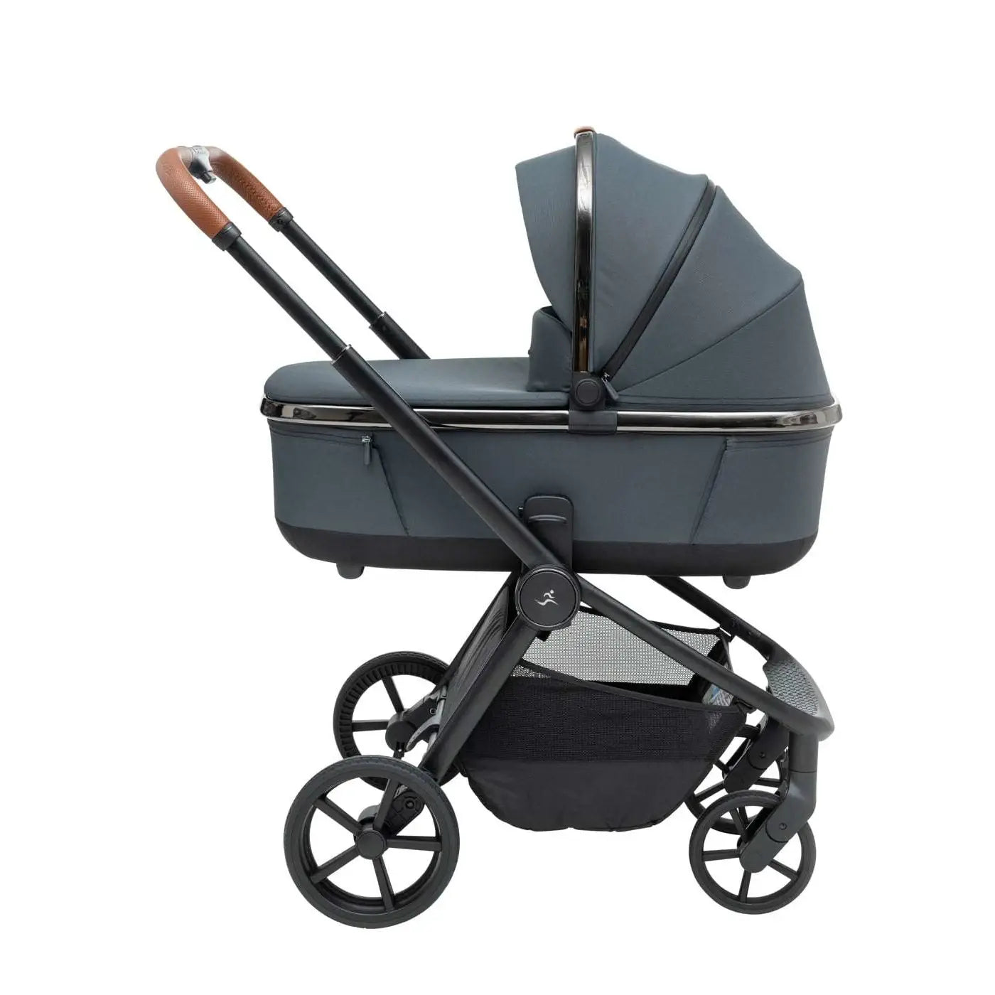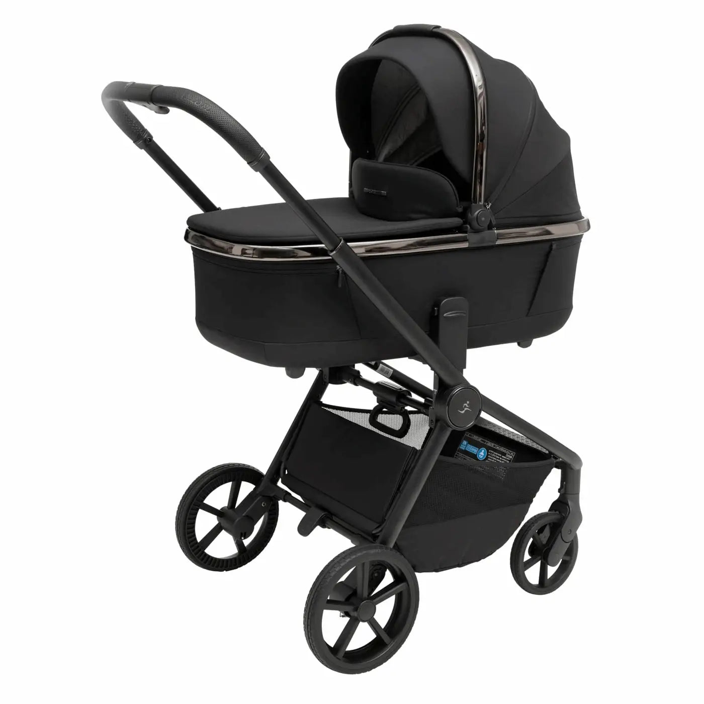 העגלה בעיצוב יוקרתי של כרום שחור לסל השכיבה וגגון הטיולון המעניק לה לוק אלגנטי במיוחד.