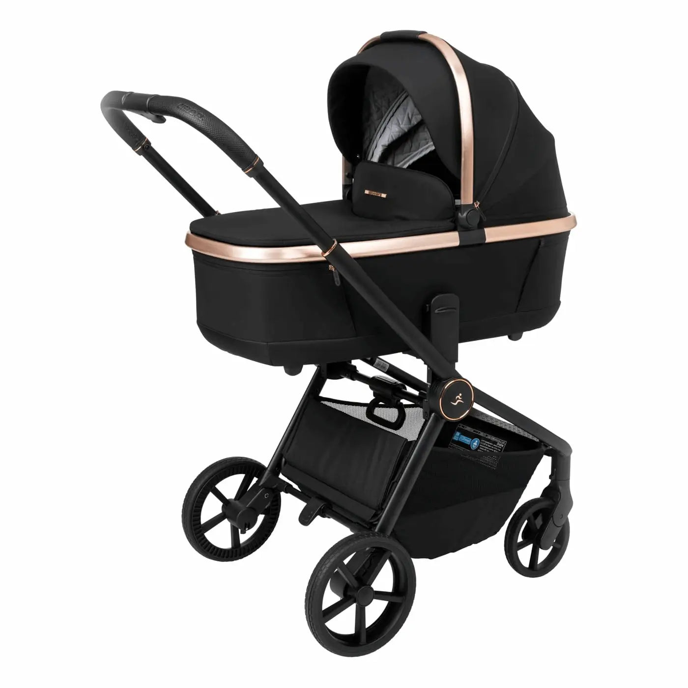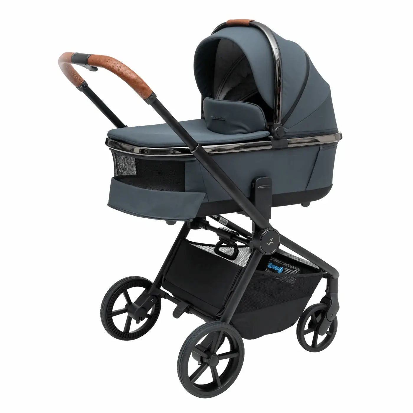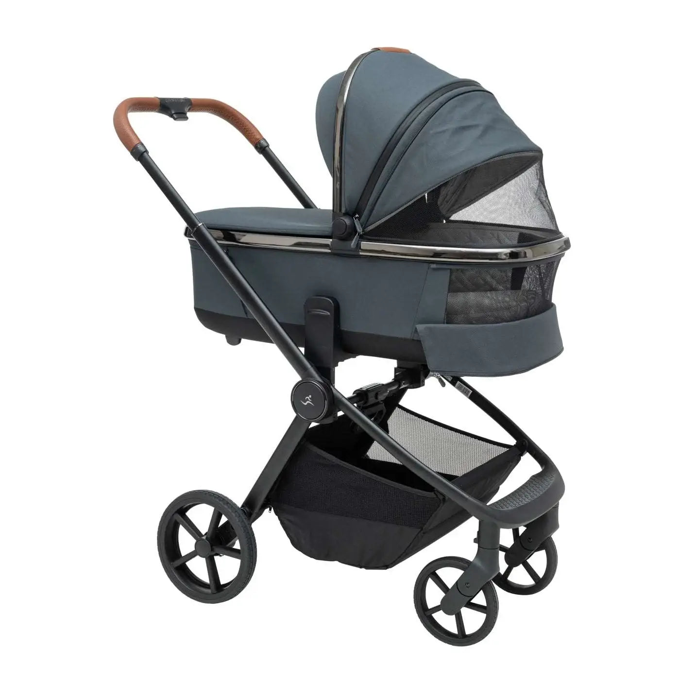 העגלה בעיצוב יוקרתי של כרום שחור לסל השכיבה וגגון הטיולון המעניק לה לוק אלגנטי במיוחד.