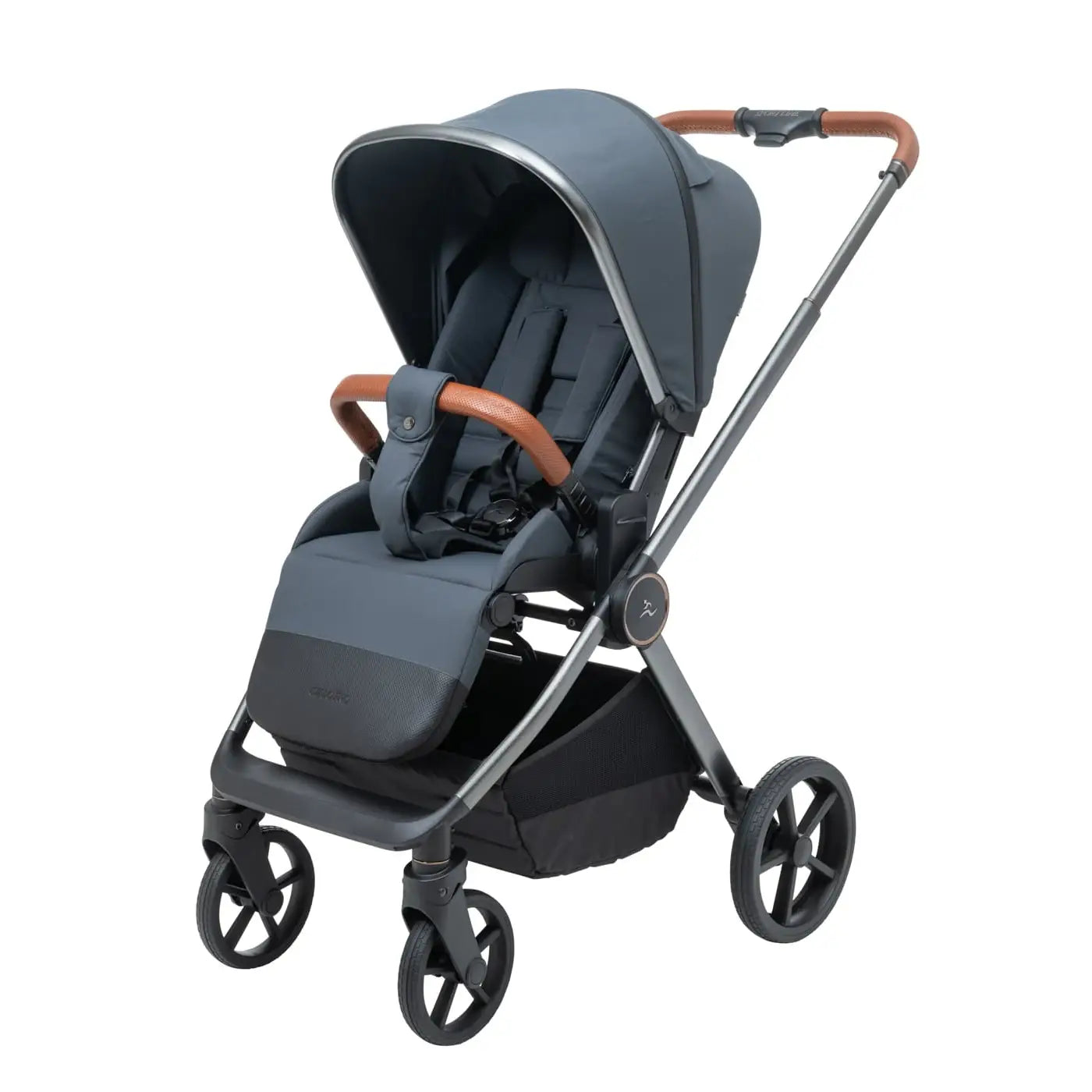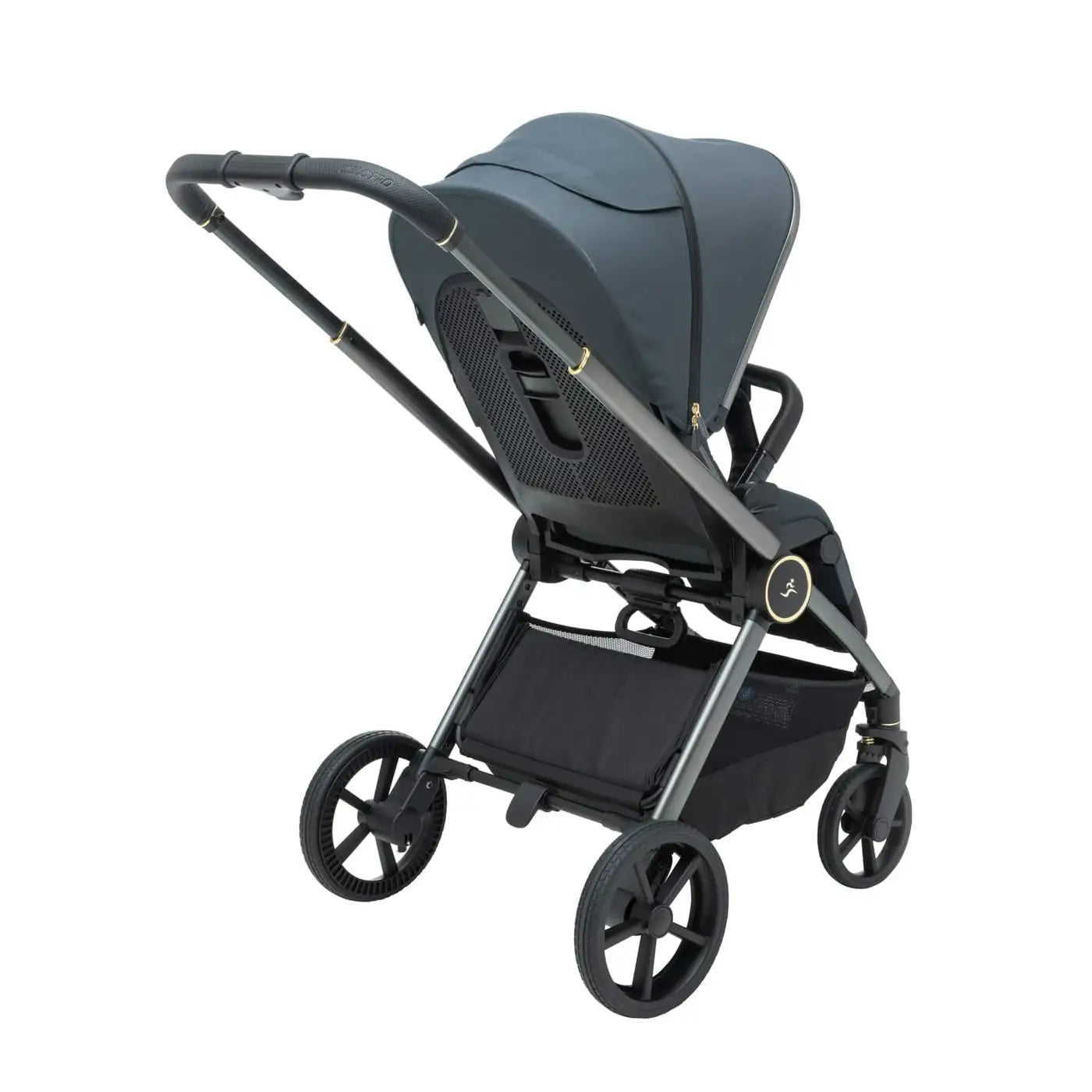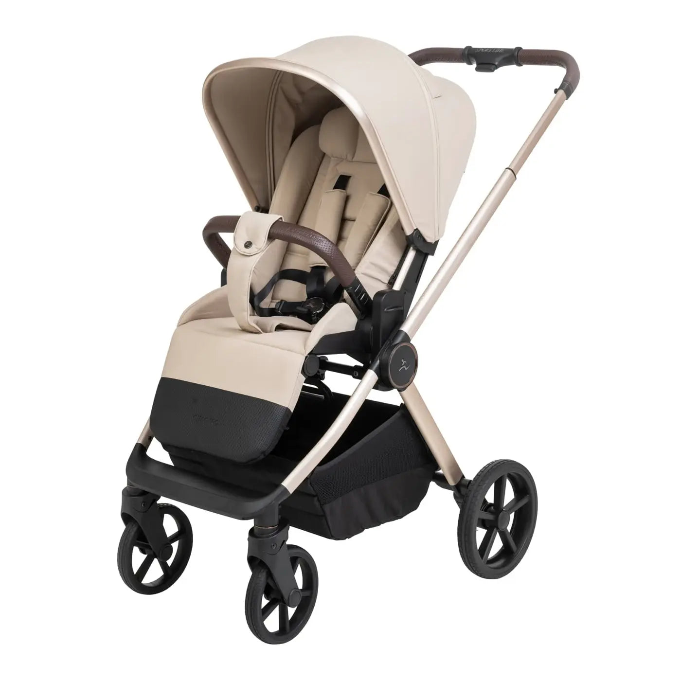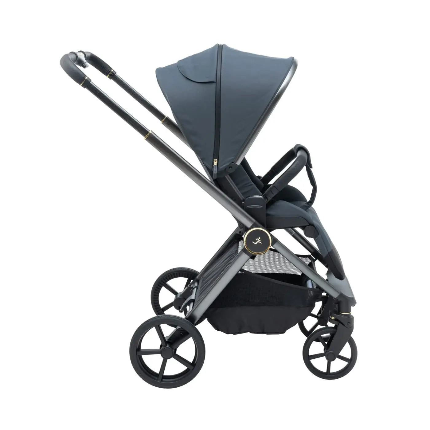 וגלגלים גדולים וייחודיים לעגלה שלדה בחתך ישר ייחודי בגוון מוברש מהפנט, מושב טיולון מפואר