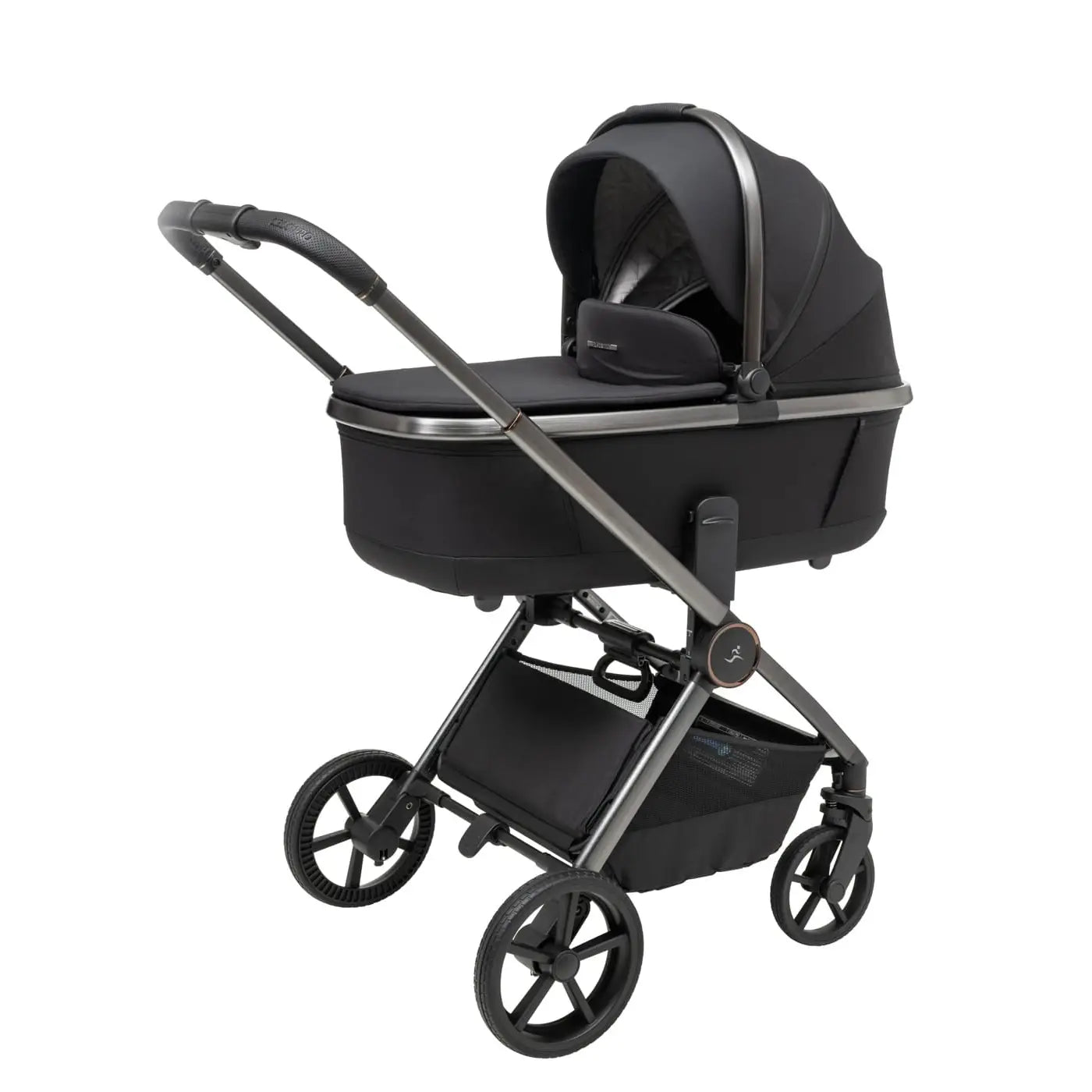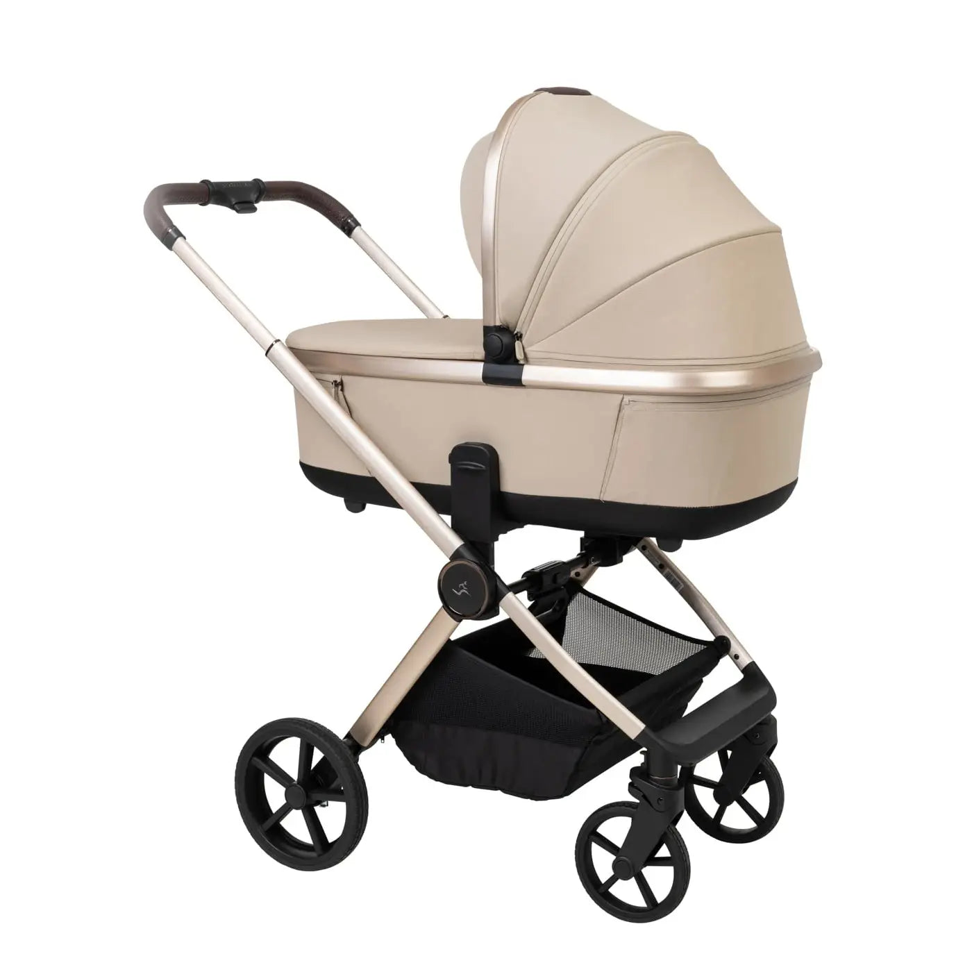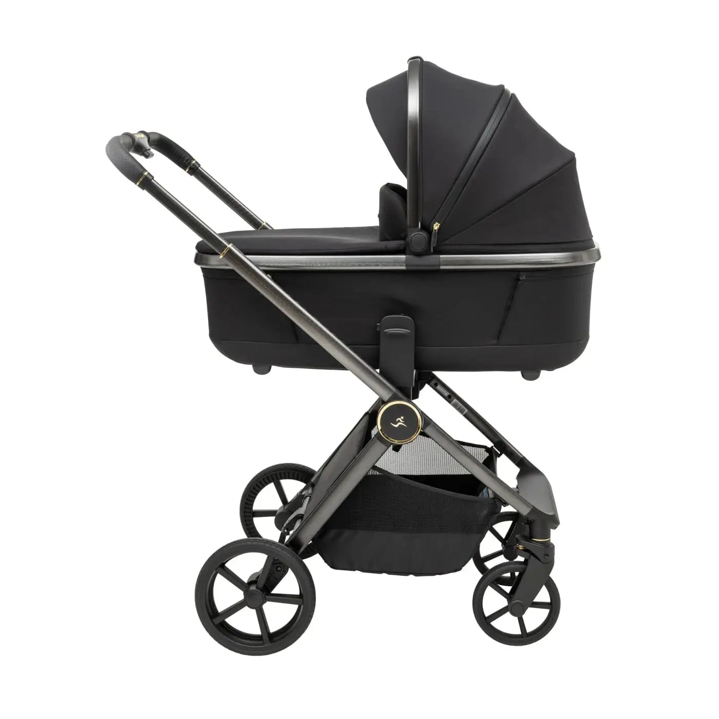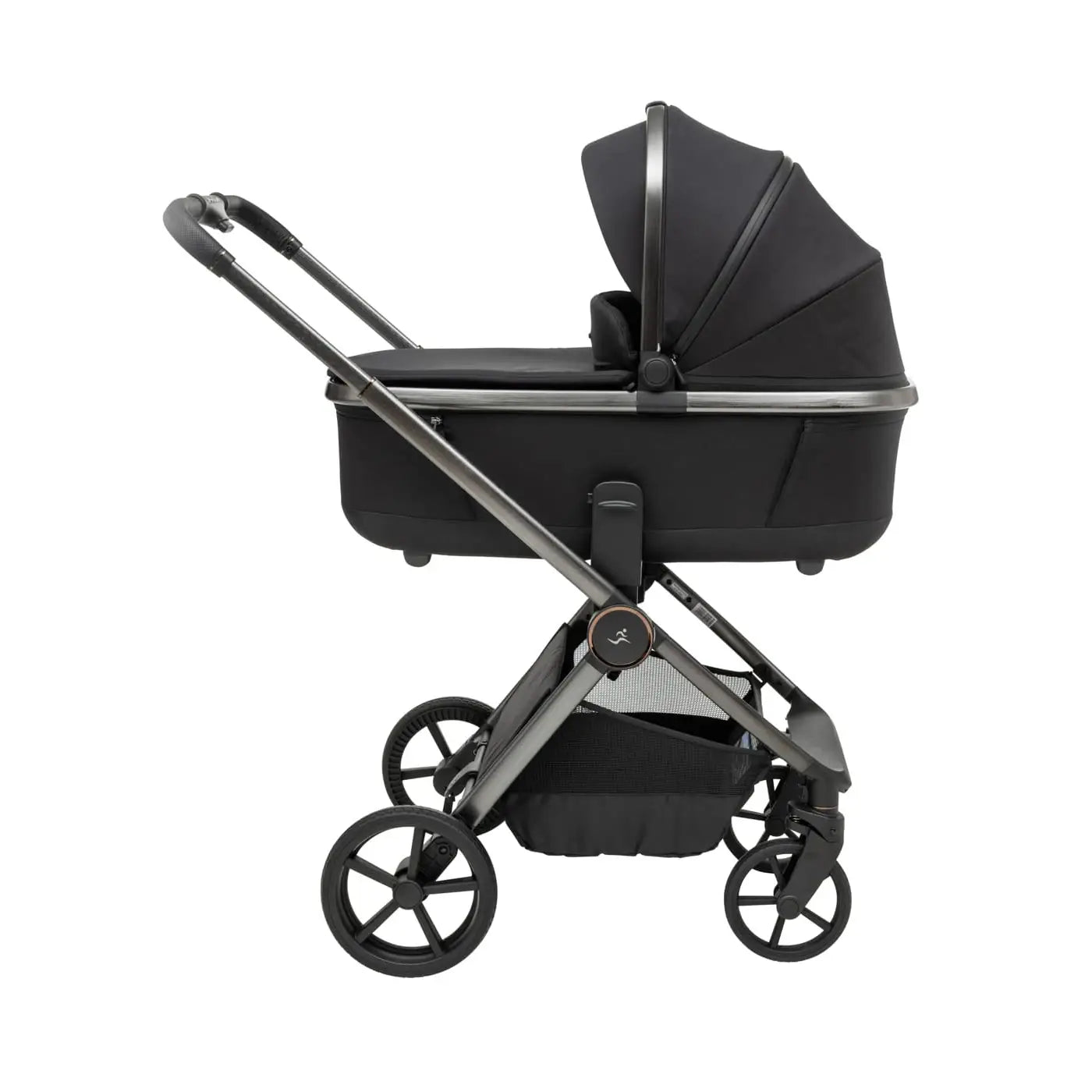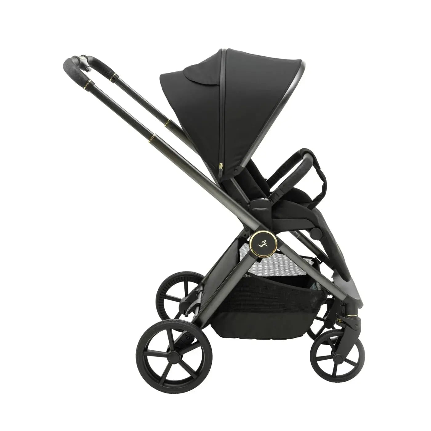 וגלגלים גדולים וייחודיים לעגלה שלדה בחתך ישר ייחודי בגוון מוברש מהפנט, מושב טיולון מפואר