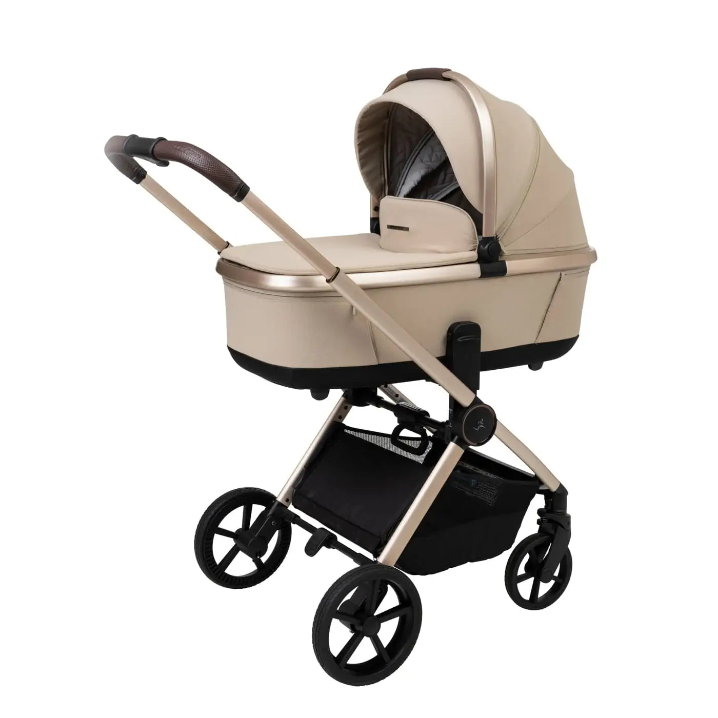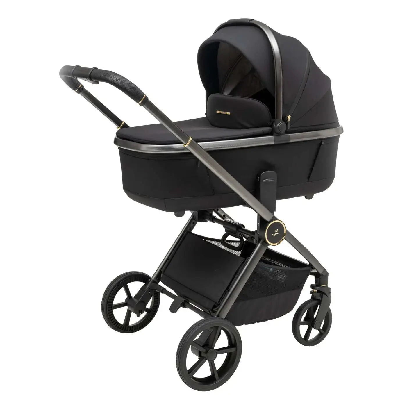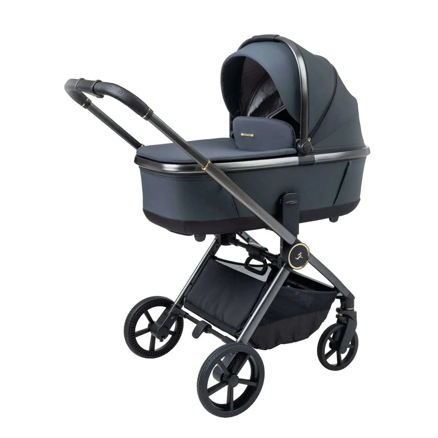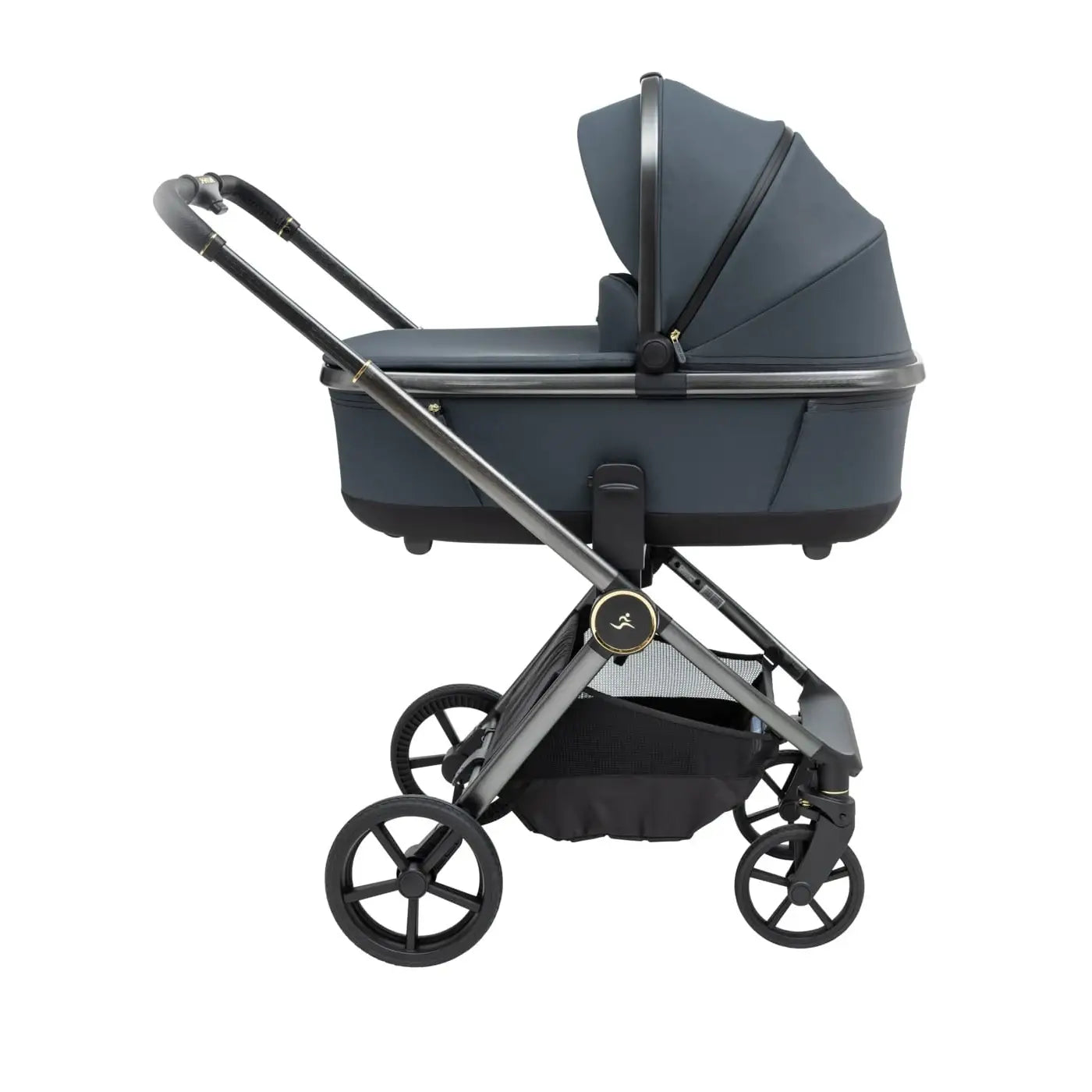וגלגלים גדולים וייחודיים לעגלה שלדה בחתך ישר ייחודי בגוון מוברש מהפנט, מושב טיולון מפואר