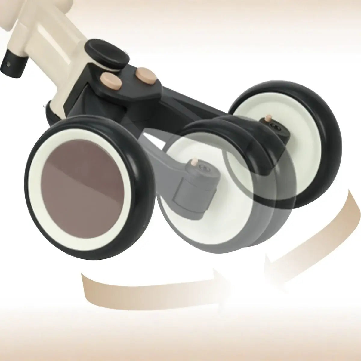 בלחיצה קלה הגלגלים האחוריים מתקפלים והתלת אופן הופך לאופני איזון