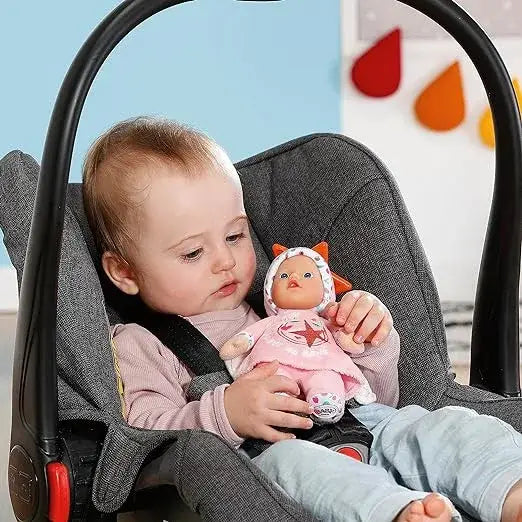 בובת בייבי בורן המתוקה היא הבובה הראשונה לתינוקות שרק נולדו! מכיוון שגופה מכיל מלית רכה היא מושלמת עבור התינוקות הקטנים! הראש המעוצב באהבה של בובת הבד עשוי מויניל רך וכולל עיניים צבועות ידידותיות ורעשן שמתחבא בתוך הבובה.