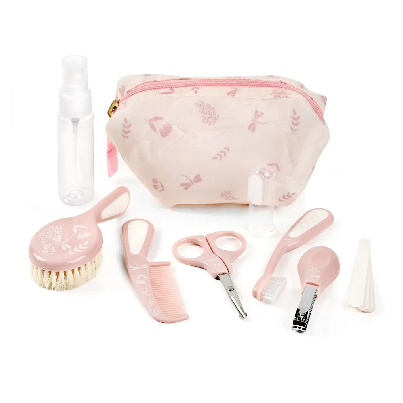ערכת טיפוח מפנקת לבייבי עם 12 מוצרי טיפוח הכוללים תיק רחצה מפנק ופרקטי לנסיעות , מספריים , בקבוק ספריי , משייף , קוצץ ציפורניים ,מברשת שיניים , מסרק עם שיערות רכות המותאומות לקרקפת הבייבי ,מסרק נוסף וכל האביזרים שהבייביז צריכים .