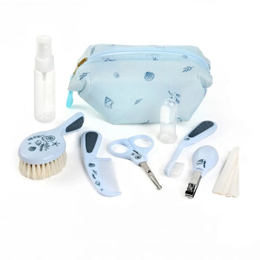ערכת טיפוח מפנקת לבייבי עם 12 מוצרי טיפוח הכוללים תיק רחצה מפנק ופרקטי לנסיעות , מספריים , בקבוק ספריי , משייף , קוצץ ציפורניים ,מברשת שיניים , מסרק עם שיערות רכות המותאומות לקרקפת הבייבי ,מסרק נוסף וכל האביזרים שהבייביז צריכים .