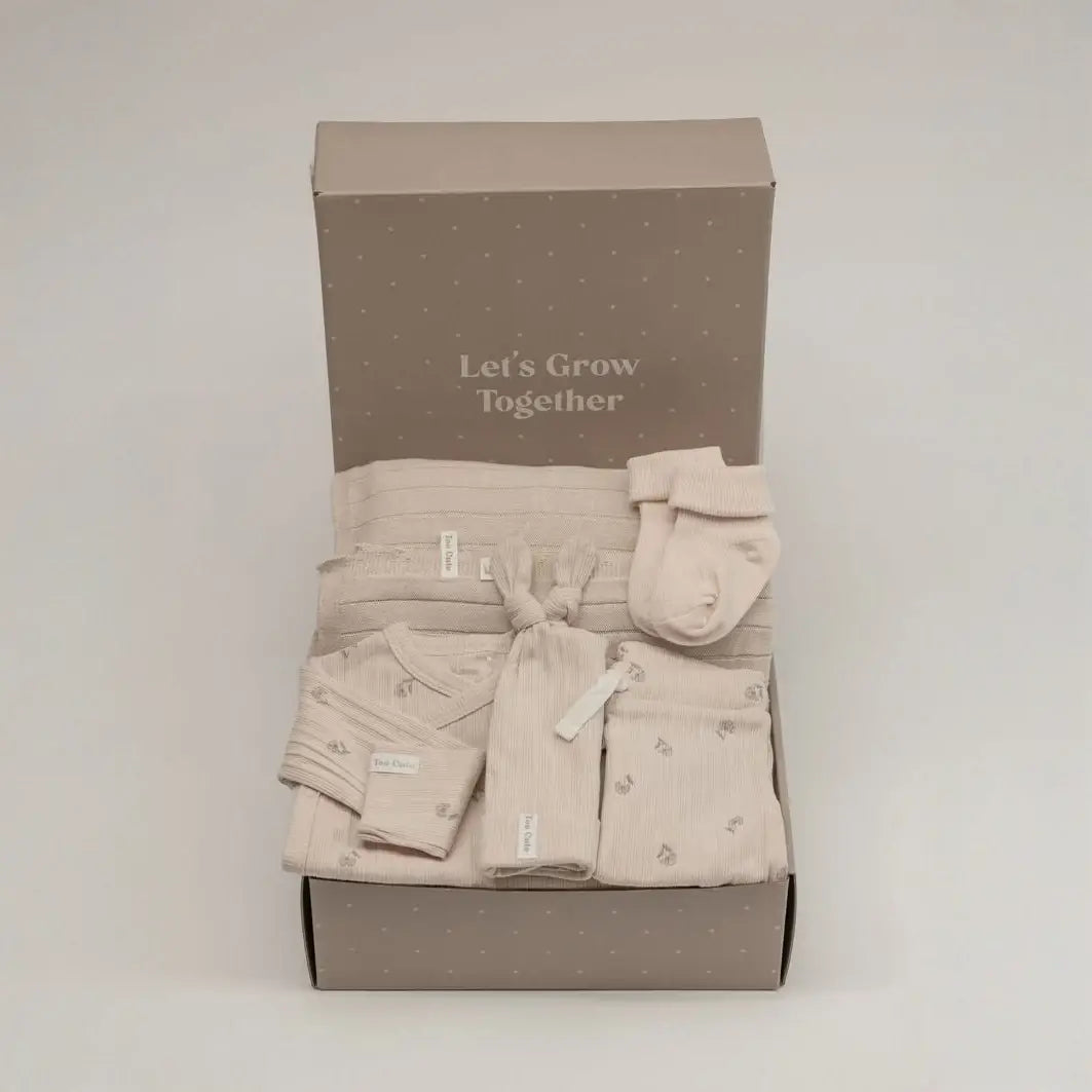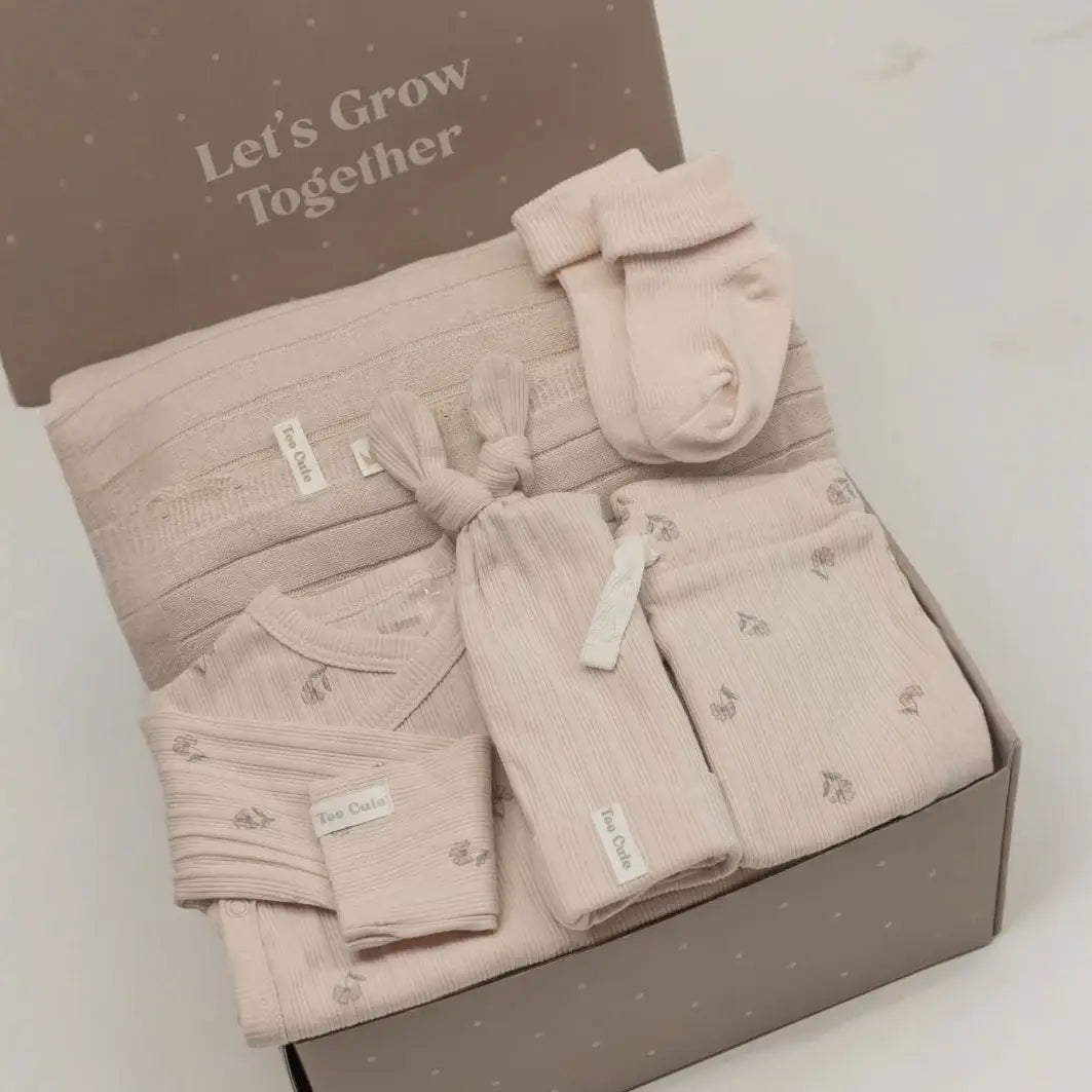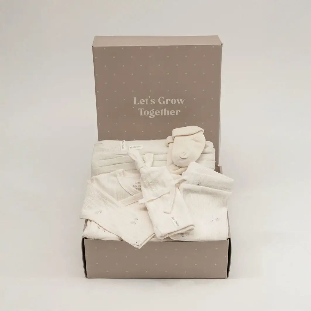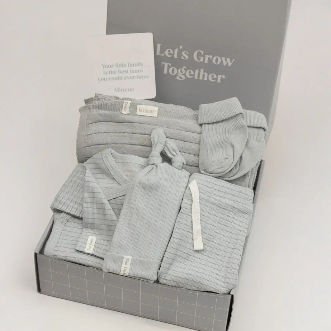 מארז לידה אופנתי, מפנק ואיכותי הכולל פריטים שימושיים במיוחד שכל הורה טרי ישמח לקבל מאת מיננה.