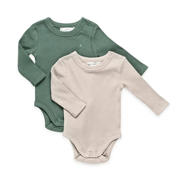 מארז 2 בגדי גוף Organic שרוול ארוך ירוק ואפור בהיר