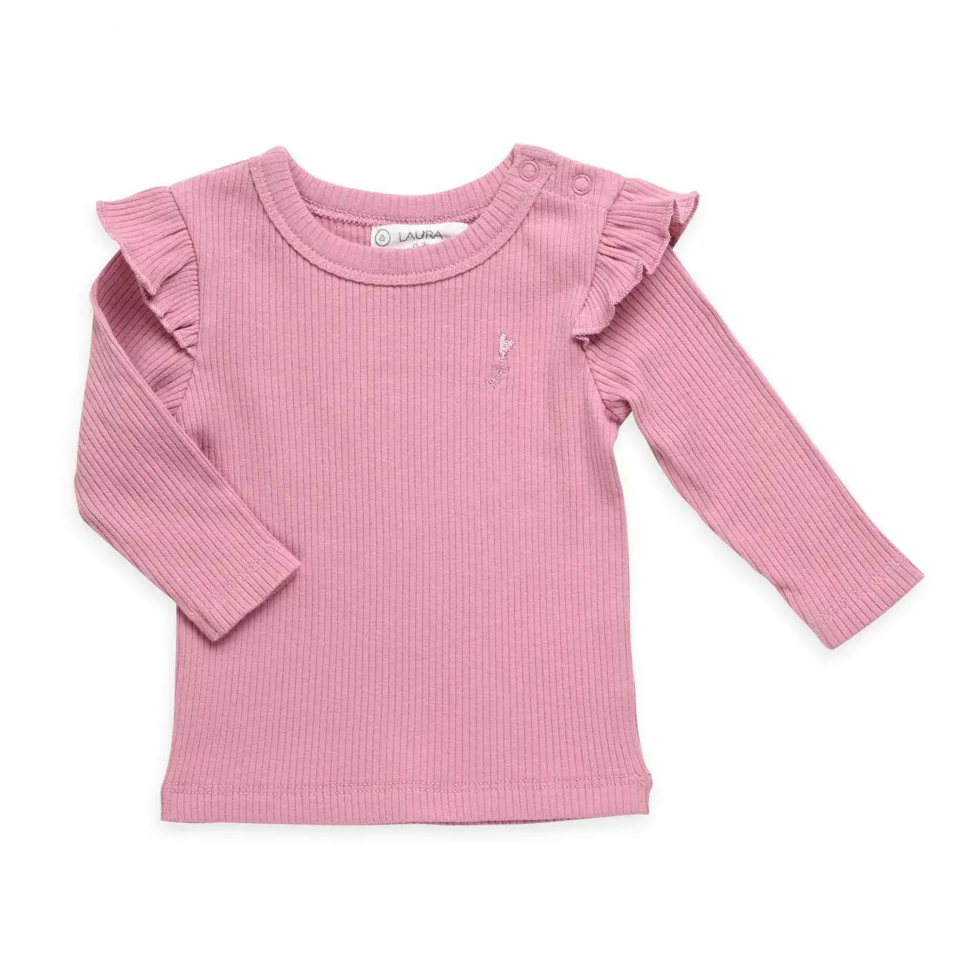 חולצת טי-שירט עם שרוולים ארוכים בצבע ורוד בתוספת מלמלה עם טאץ מתוק עשויה מבד כותנה אורגנית רכה ונושמת