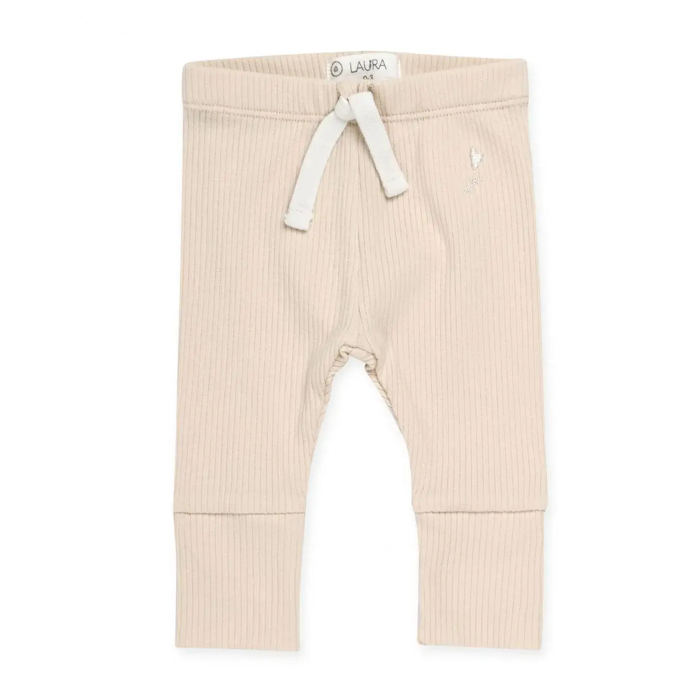 מכנסיים ארוכים בצבע בז’ בעיצוב עדין ופשוט שישלים לתינוק כל לוק עשוי מבד כותנה אורגנית רכה ונושמת