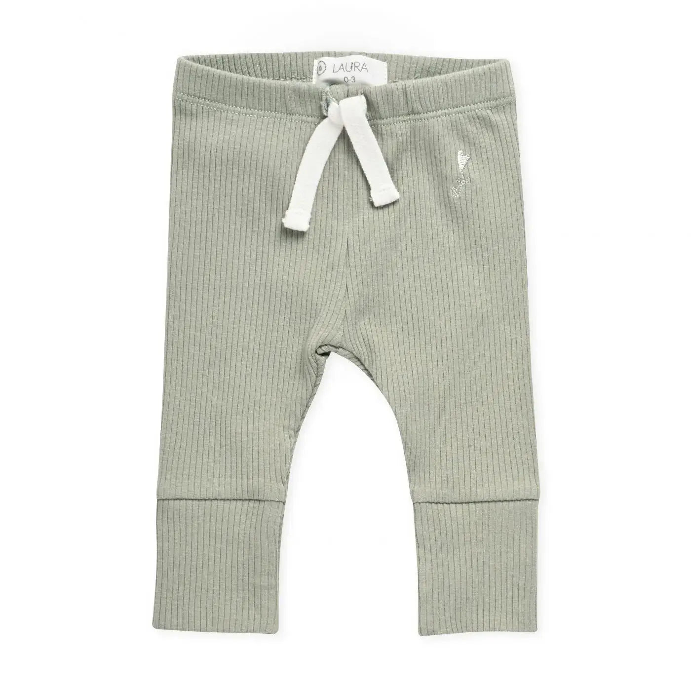 מכנסיים ארוכים בצבע ירוק בעיצוב עדין ופשוט שישלים לתינוק כל לוק עשוי מבד כותנה אורגנית רכה ונושמת